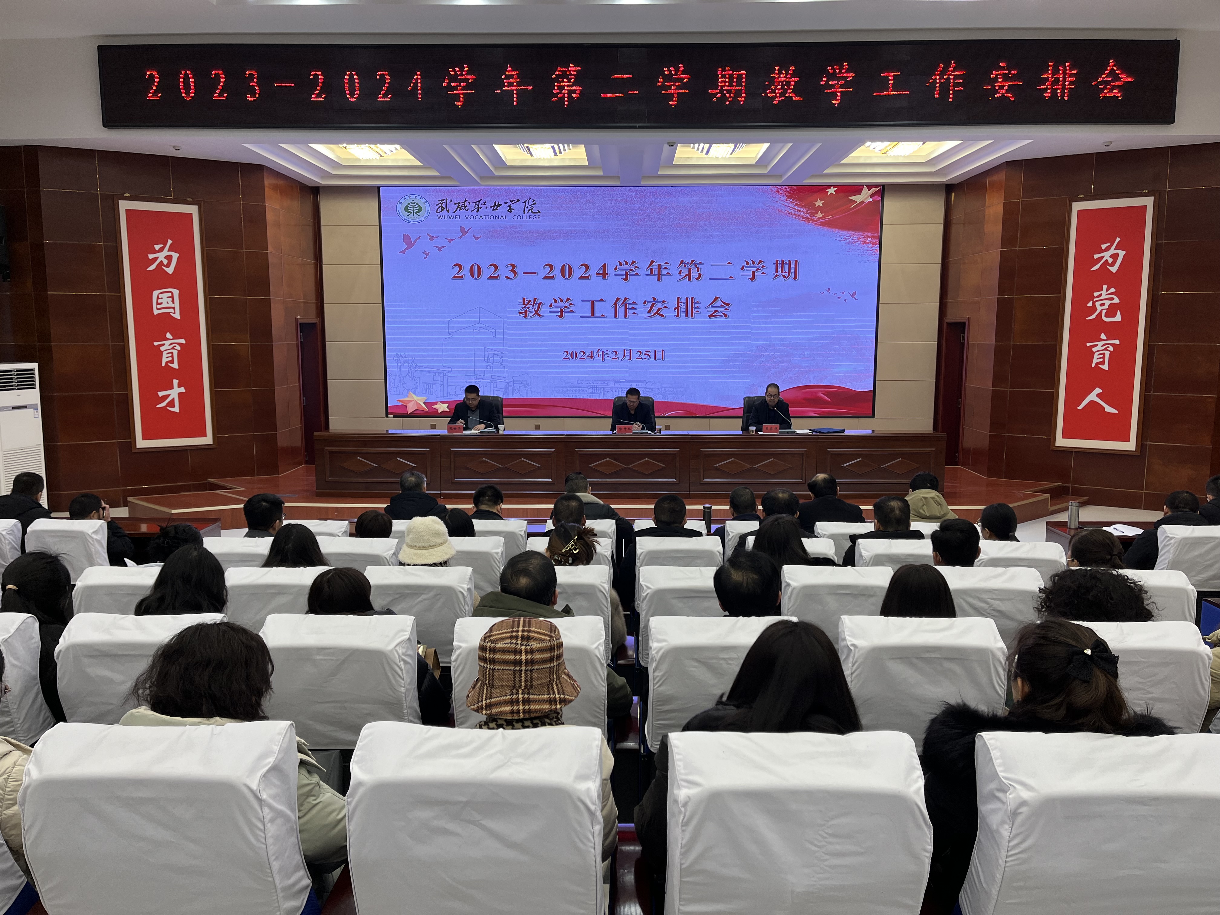 為持續(xù)推動教學(xué)運行與管理規(guī)范化、標(biāo)準(zhǔn)化、科學(xué)化,進(jìn)一步提升新學(xué)期教學(xué)工作成效和人才培養(yǎng)質(zhì)量,扎實推進(jìn)學(xué)校高質(zhì)量建設(shè),2月25日上午,學(xué)校在菁英廳組織召開了2023-2024學(xué)年第二學(xué)期教學(xué)工作安排會。學(xué)校校長、黨委副書記張開禮、黨委副書記翟存祥、各二級學(xué)院負(fù)責(zé)人、教學(xué)秘書、教研室主任、各專業(yè)帶頭人和教務(wù)處全體工作人員參加了會議。會議由翟存祥主持。