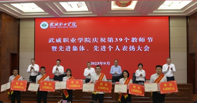 學校領導分別宣讀了《中共武威職業(yè)學院委員會關于表揚2023年教育工作先進集體和先進個人的決定》《武威職業(yè)學院關于認定(聘任)2023年“教書育人楷模”“我最喜愛的老師”“教學名師”“教學能手”“教學新秀”“骨干教師”“專業(yè)帶頭人”的決定》,向國獎獲獎團隊代表、優(yōu)秀教師代表頒發(fā)榮譽證書并發(fā)放慰問金。