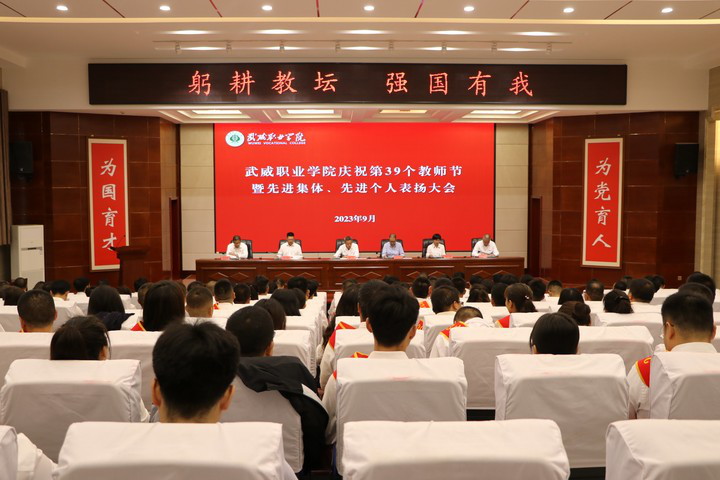 9月8日上午,在第39個教師節(jié)即將來臨之際,武威職業(yè)學院慶祝2023年教師節(jié)暨先進集體和先進個人表揚大會在菁英廳隆重舉行。學院黨委書記、校長趙明主持會議并講話,在家領導班子成員出席會議,中層管理干部、受表揚的教師和師生代表參加會議。
