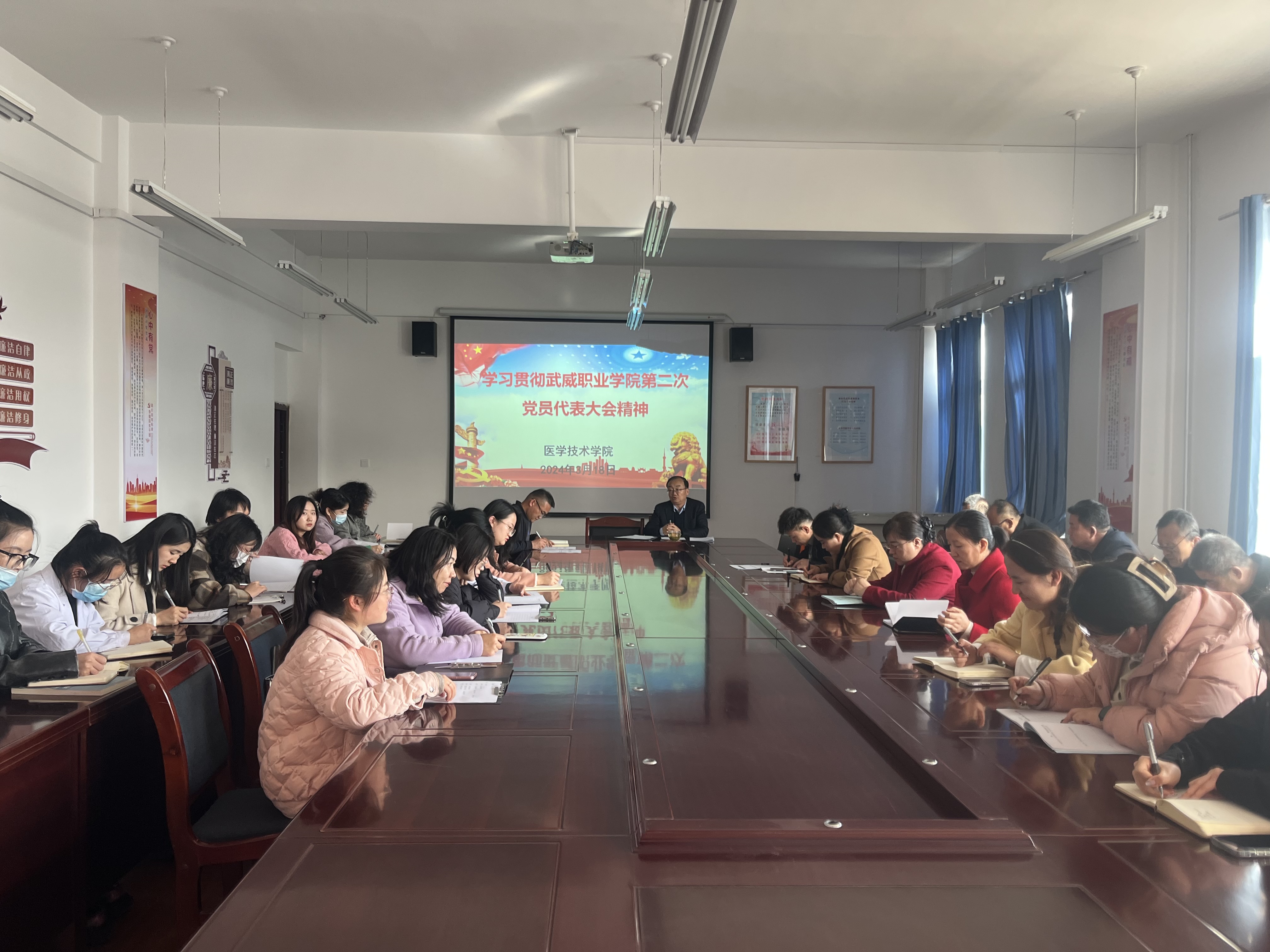 3月13日,中國(guó)共產(chǎn)黨武威職業(yè)學(xué)院第二次代表大會(huì)在我校召開。為學(xué)習(xí)貫徹會(huì)議精神,3月18日下午,醫(yī)學(xué)技術(shù)學(xué)院召開全體教職工會(huì)議傳達(dá)學(xué)校第二次代表大會(huì)精神,會(huì)議以“學(xué)習(xí)貫徹中國(guó)共產(chǎn)黨武威職業(yè)學(xué)院第二次代表大會(huì)精神”為主題,結(jié)合醫(yī)學(xué)技術(shù)學(xué)院實(shí)際提出落實(shí)舉措。