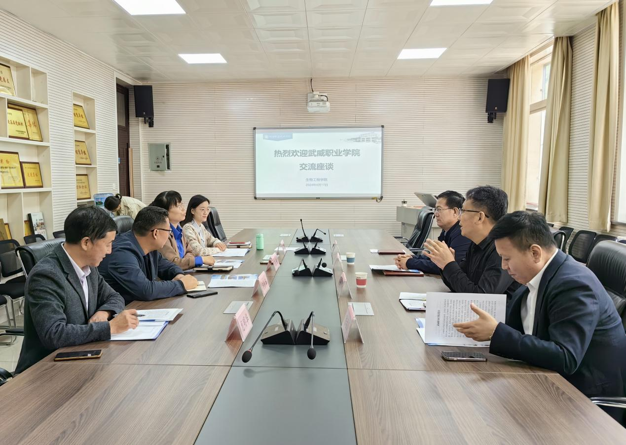 座談會上,王燕詳細(xì)介紹了生物工程學(xué)院基本情況。張開禮介紹了武威職業(yè)學(xué)院發(fā)展基本情況。雙方就專業(yè)建設(shè)、人才培養(yǎng)、實(shí)驗(yàn)實(shí)訓(xùn)建設(shè)、實(shí)習(xí)就業(yè)基地建設(shè)、縱橫向科研項(xiàng)目申報(bào)、產(chǎn)業(yè)學(xué)院建設(shè)等方面進(jìn)行了深入探討交流。