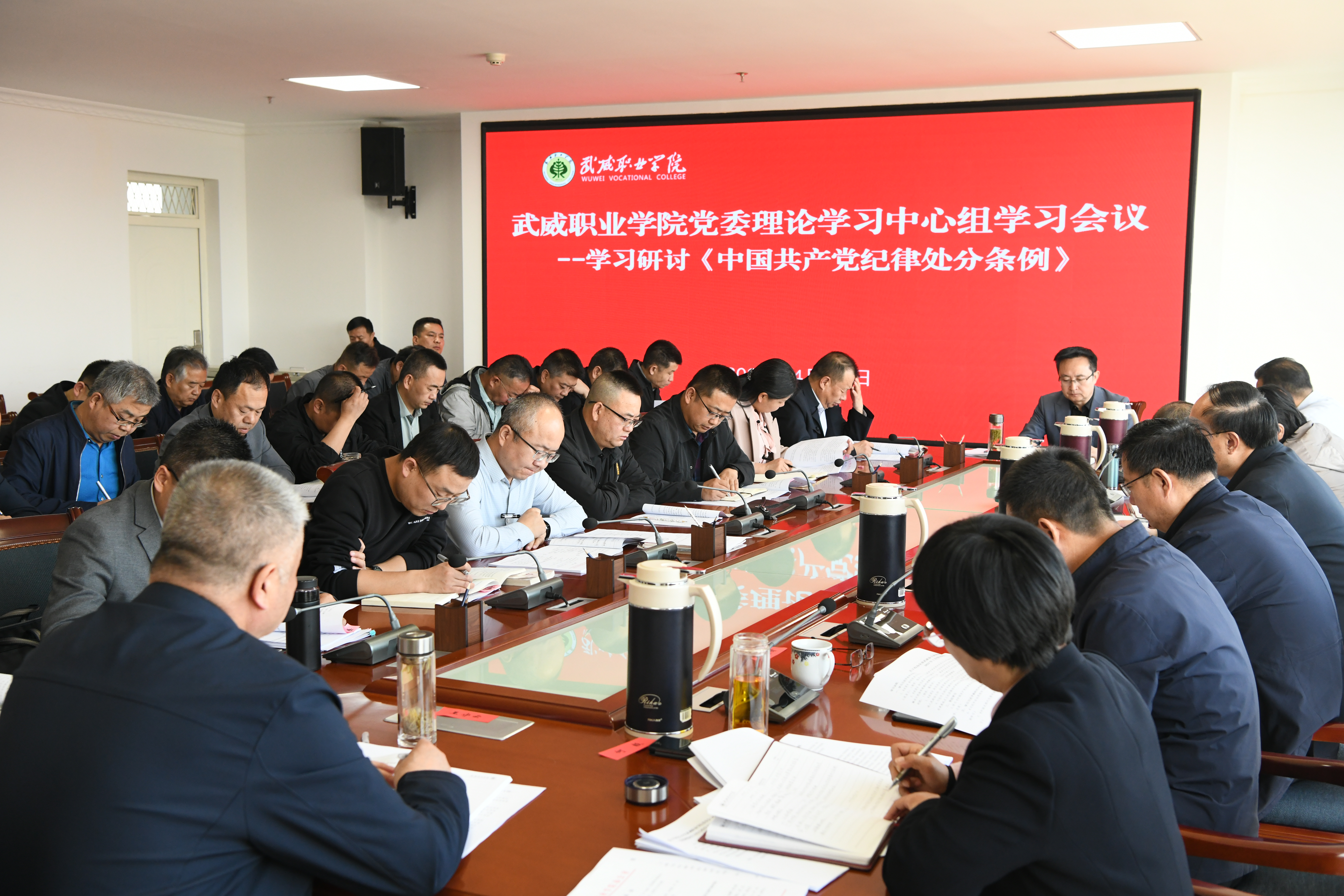 4月21日,學(xué)校黨委書記王宏主持召開黨委理論學(xué)習(xí)中心組學(xué)習(xí)會議,學(xué)習(xí)領(lǐng)會《中國共產(chǎn)黨紀(jì)律處分條例》,全面加強(qiáng)黨的紀(jì)律建設(shè),推動全面從嚴(yán)治黨向縱深發(fā)展,為建成省域內(nèi)一流高職院校,推動學(xué)校高質(zhì)量發(fā)展提供堅強(qiáng)紀(jì)律保證。學(xué)校領(lǐng)導(dǎo)班子成員,各部門、二級學(xué)院主要負(fù)責(zé)人參加會議。