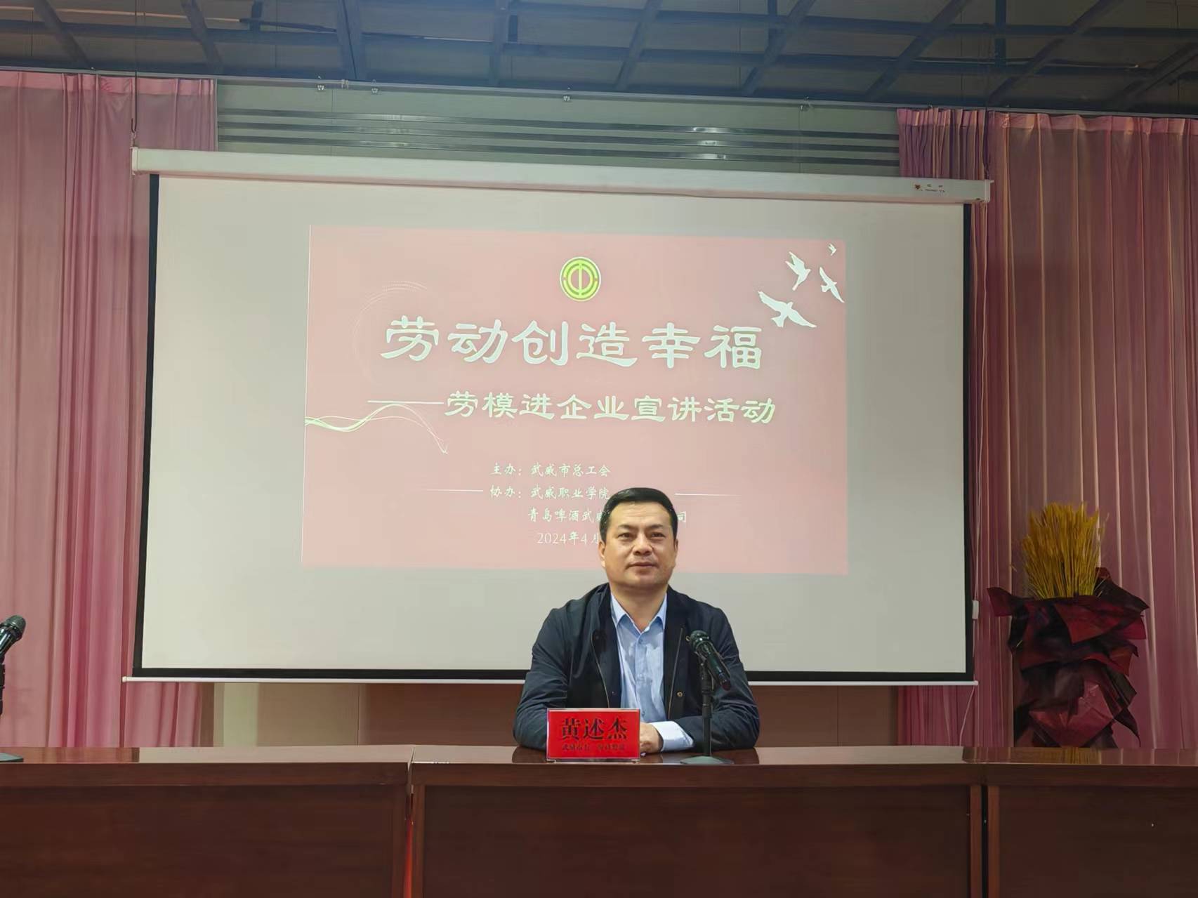 活動(dòng)邀請(qǐng)武威市五一勞動(dòng)獎(jiǎng)?wù)芦@得者、中科低碳新能源技術(shù)學(xué)院院長(zhǎng)黃述杰為現(xiàn)場(chǎng)職工作了一場(chǎng)生動(dòng)的宣講,他以“勞動(dòng)創(chuàng)造幸?!睘橹黝},結(jié)合自身奮斗經(jīng)歷,運(yùn)用通俗易懂的語(yǔ)言,圍繞勞模工匠精神的基本內(nèi)涵、基本要求等方面,為大家進(jìn)行深入淺出地闡述和講解。他的宣講深深感染了在場(chǎng)的每一個(gè)人,大家紛紛表示,要以身邊的勞模工匠為榜樣,立足本職崗位,做好本職工作,為推進(jìn)武威高質(zhì)量發(fā)展貢獻(xiàn)自己的力量。