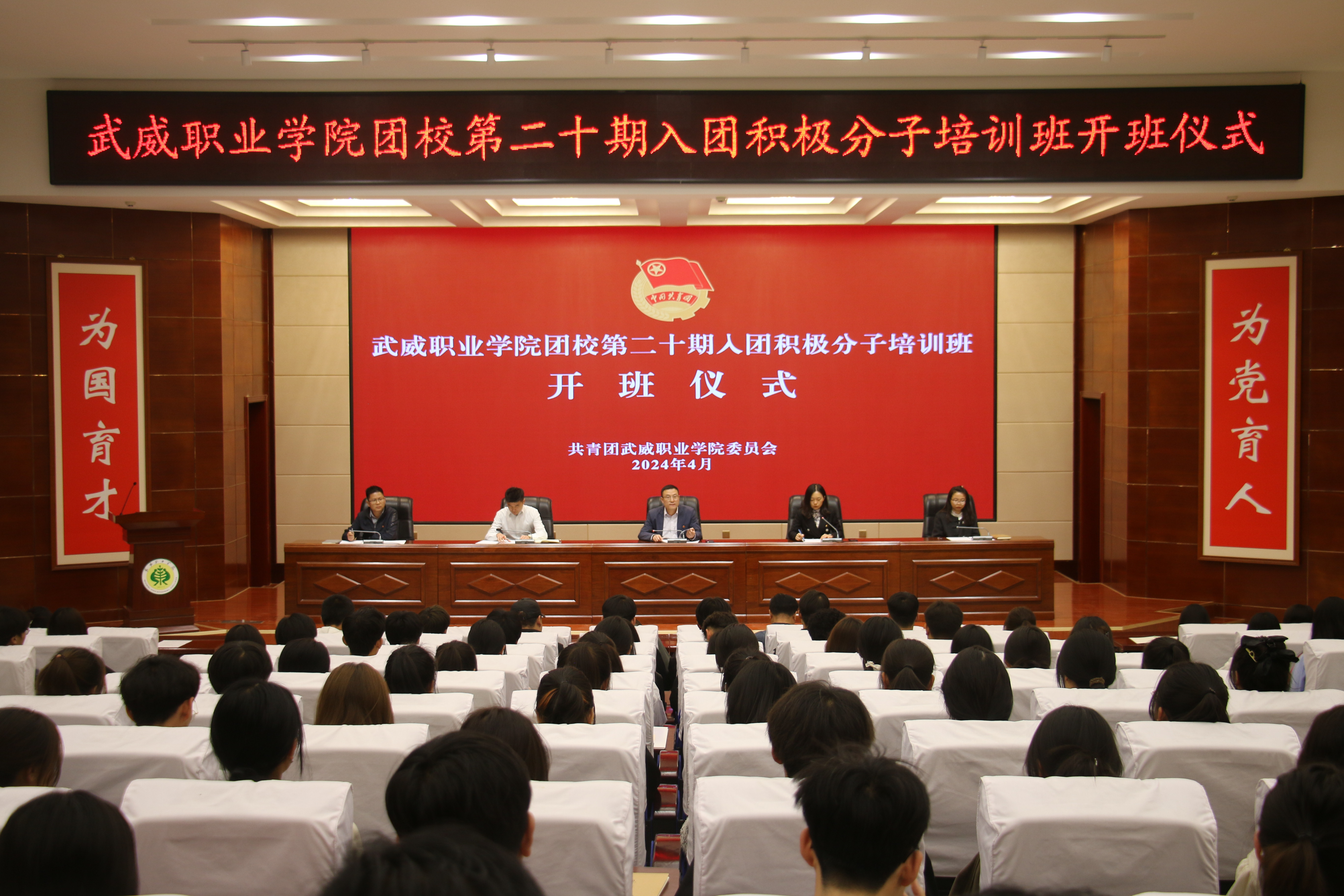 4月10日下午,學校團校第二十期入團積極分子培訓班在菁英廳舉行開班儀式。校團委全體干部、二級學院團委書記及210余名入團積極分子學員代表參加開班儀式。儀式由校團委副書記謝麗霞主持。