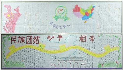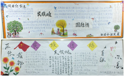 各班圍繞“謳歌民族團(tuán)結(jié)、共建和諧校園”主題進(jìn)行了精心的設(shè)計(jì),圖文并茂,內(nèi)容豐富,形式多樣。大力宣傳了黨的民族理論和民族政策以及各民族共同團(tuán)結(jié)奮斗、共同繁榮發(fā)展的民族關(guān)系。