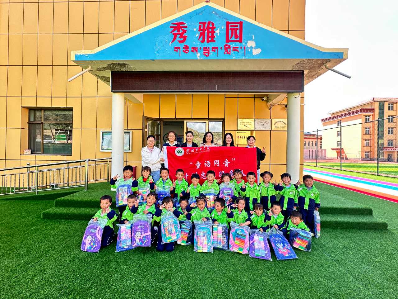 培訓程結束后,“童語同音”志愿服務團隊與幼兒開展語言文字類的系列活動,激發(fā)了小朋友學習普通話的興趣和熱情;最后為幼兒園小班小朋友捐贈了書包、彩泥、彩筆等文具。