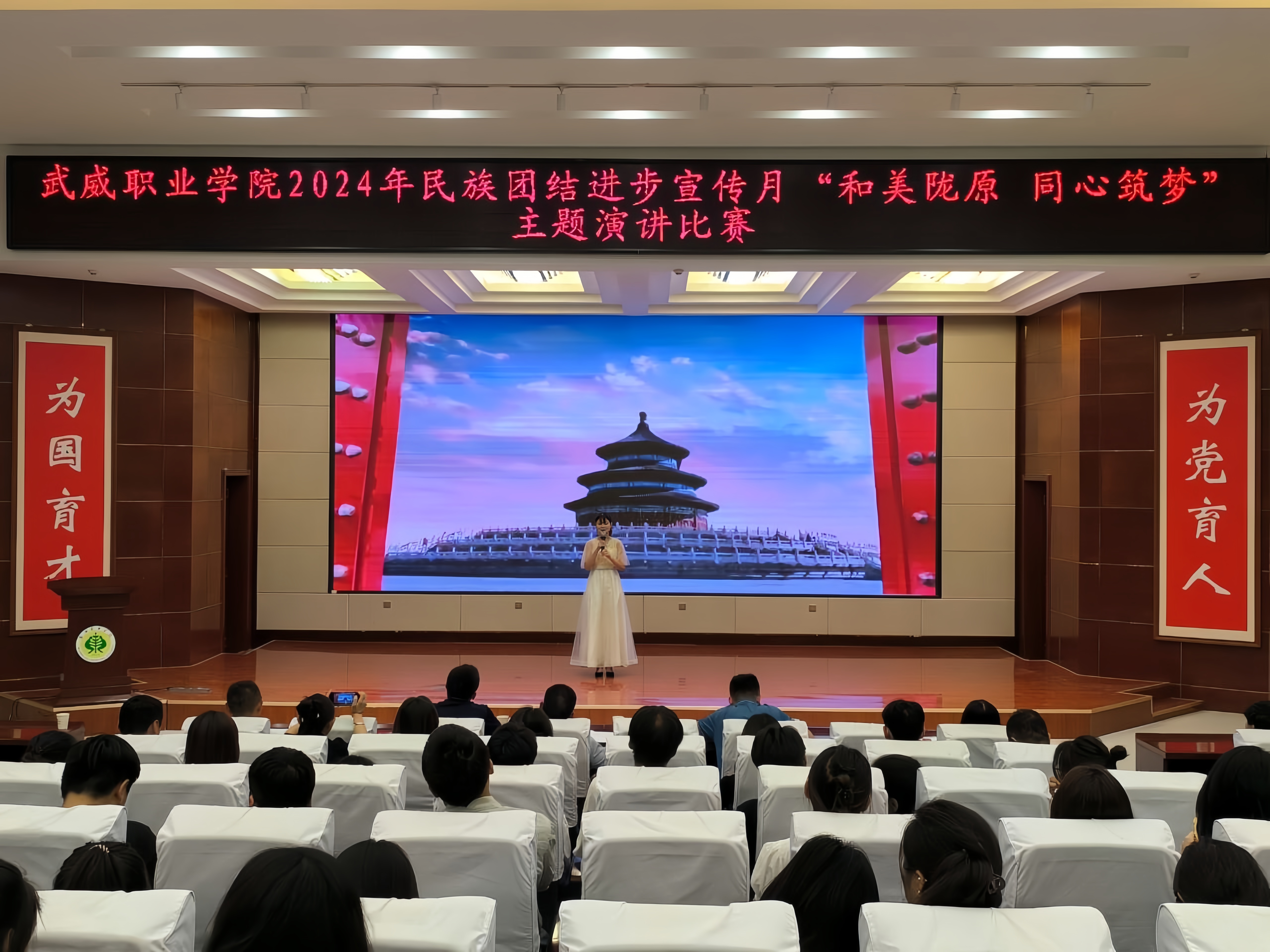 為持續(xù)深化民族團(tuán)結(jié)進(jìn)步教育,進(jìn)一步引導(dǎo)各族師生牢固樹(shù)立“四個(gè)與共”的共同體理念。學(xué)校于5月30日晚在學(xué)生發(fā)展中心菁英廳舉辦了“和美隴原 同心筑夢(mèng)”主題演講比賽。200余名師生參加活動(dòng)。