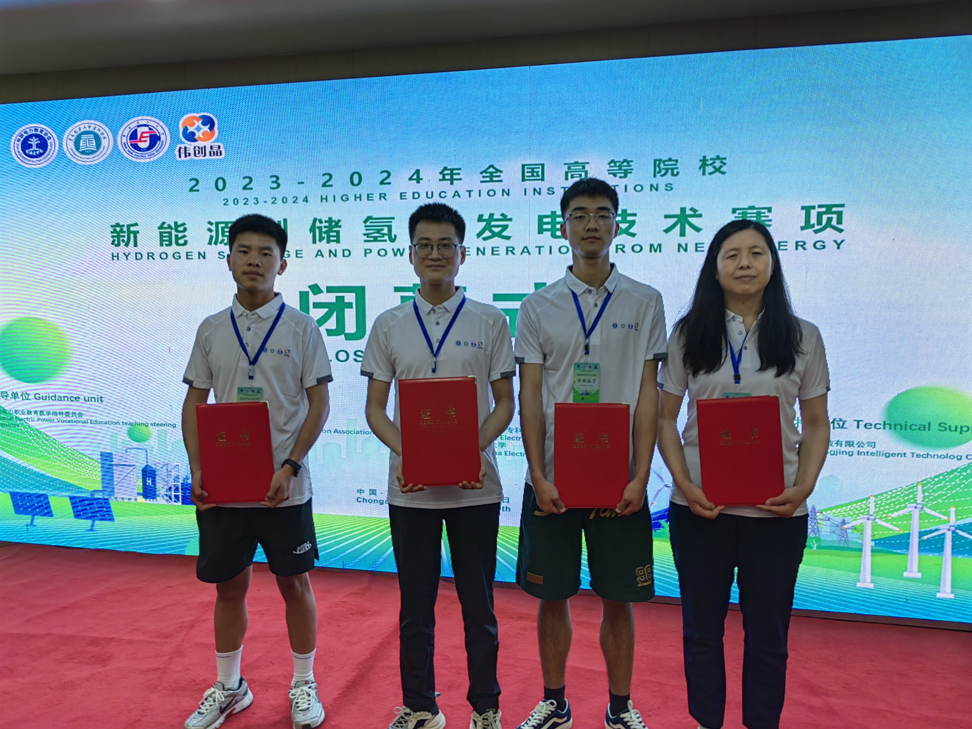 5月17日,全國首屆高等學(xué)校新能源制儲氫及發(fā)電技術(shù)競賽在重慶電力高等專科學(xué)校舉行,本次大賽由全國電力職業(yè)教育教學(xué)指導(dǎo)委員會指導(dǎo),中國電力教育協(xié)會主辦,華北電力大學(xué)、重慶電力高等??茖W(xué)校承辦。全國有22個(gè)省市48所高校108支隊(duì)伍參賽。參賽采用1名教師和1名學(xué)生師生聯(lián)賽方式進(jìn)行。我校中科低碳新能源技術(shù)學(xué)院教師王續(xù)峰和學(xué)生王智組成的參賽1隊(duì)榮獲全國二等獎(jiǎng),教師黃菊梅和學(xué)生董杰組成的參賽2隊(duì)榮獲全國三等獎(jiǎng)。