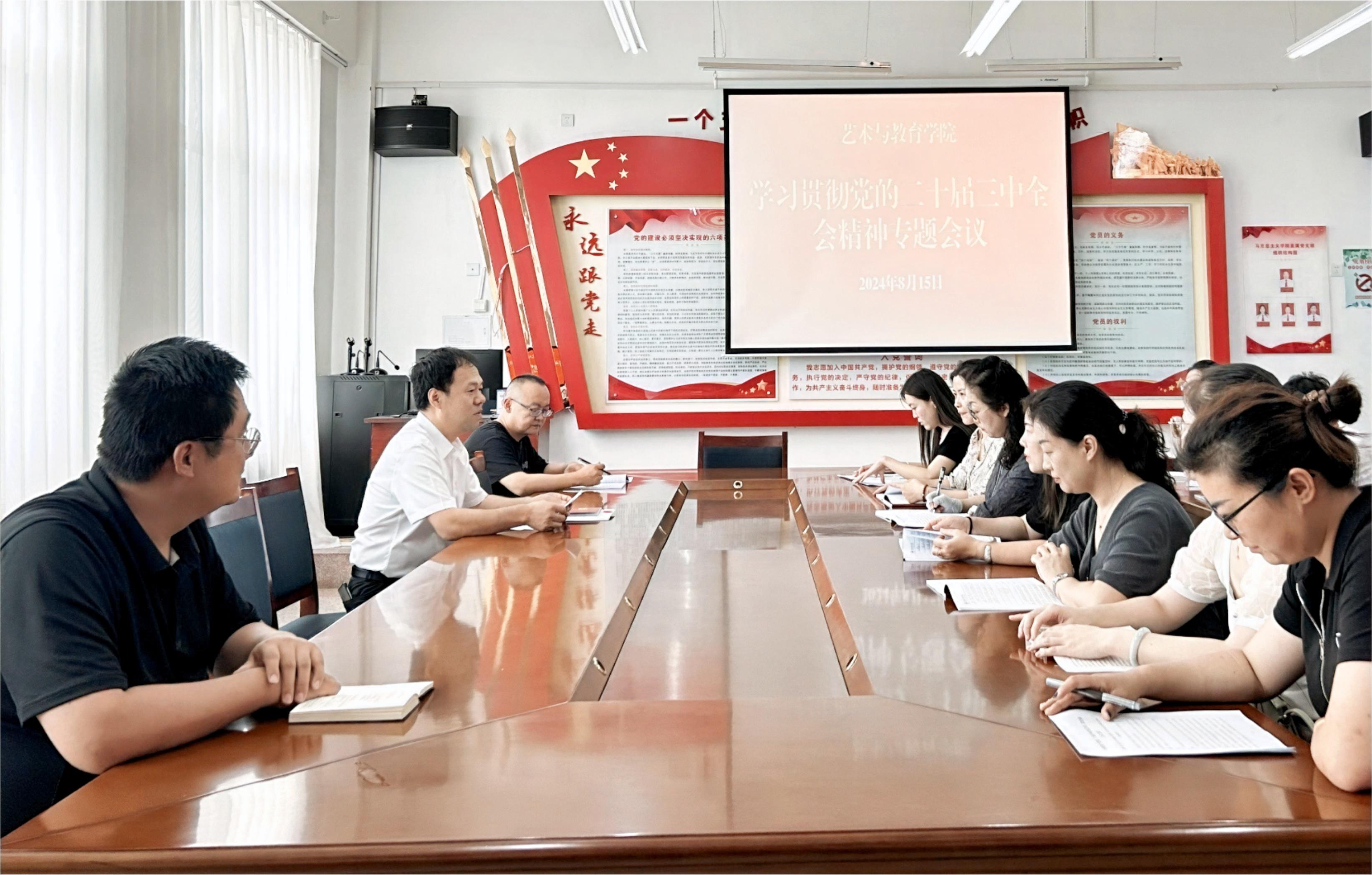 8月15日,藝術(shù)與教育學(xué)院召開黨的二十屆三中全會精神專題學(xué)習會議,傳達學(xué)習《習近平總書記關(guān)于<中共中央關(guān)于進一步全面深化改革、推進中國式現(xiàn)代化的決定>的說明》《中國共產(chǎn)黨第二十屆中央委員會第三次全體會議公報》《中共中央關(guān)于進一步全面深化改革推進中國式現(xiàn)代化的決定》,以及《深化教育綜合改革》等內(nèi)容。會議由學(xué)院黨總支書記王政主持,全體教職工參加會議。