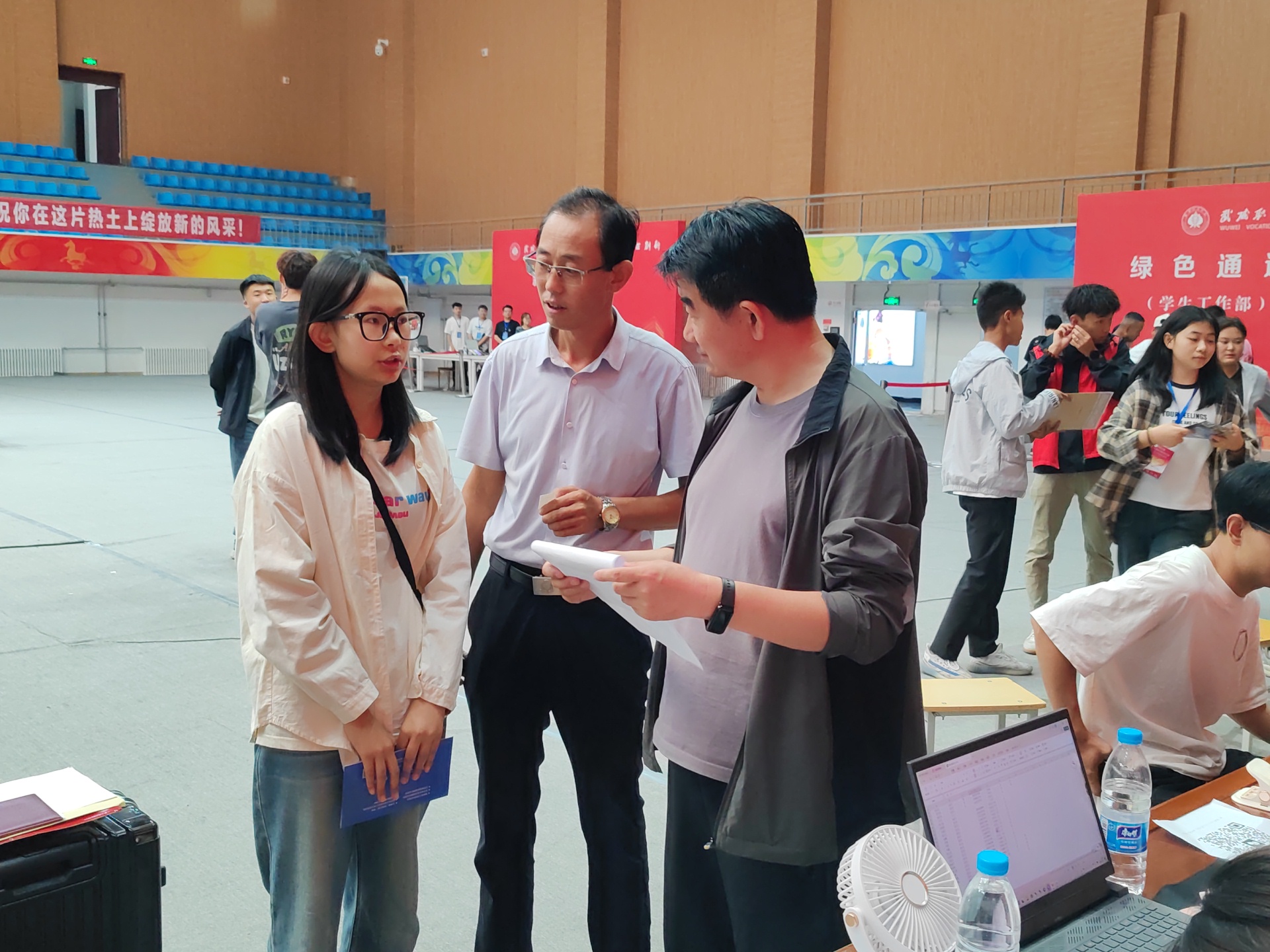 信息技術(shù)學(xué)院黨總支書記史子新到迎新現(xiàn)場(chǎng),了解新生報(bào)到情況,慰問迎新工作人員和志愿者,要求工作人員和志愿者要落細(xì)落實(shí)各項(xiàng)工作,了解新生的適應(yīng)情況,勉勵(lì)新生保持積極樂觀、堅(jiān)韌不拔的生活態(tài)度,練就過(guò)硬的本領(lǐng)報(bào)效國(guó)家、感恩社會(huì)、服務(wù)人民。