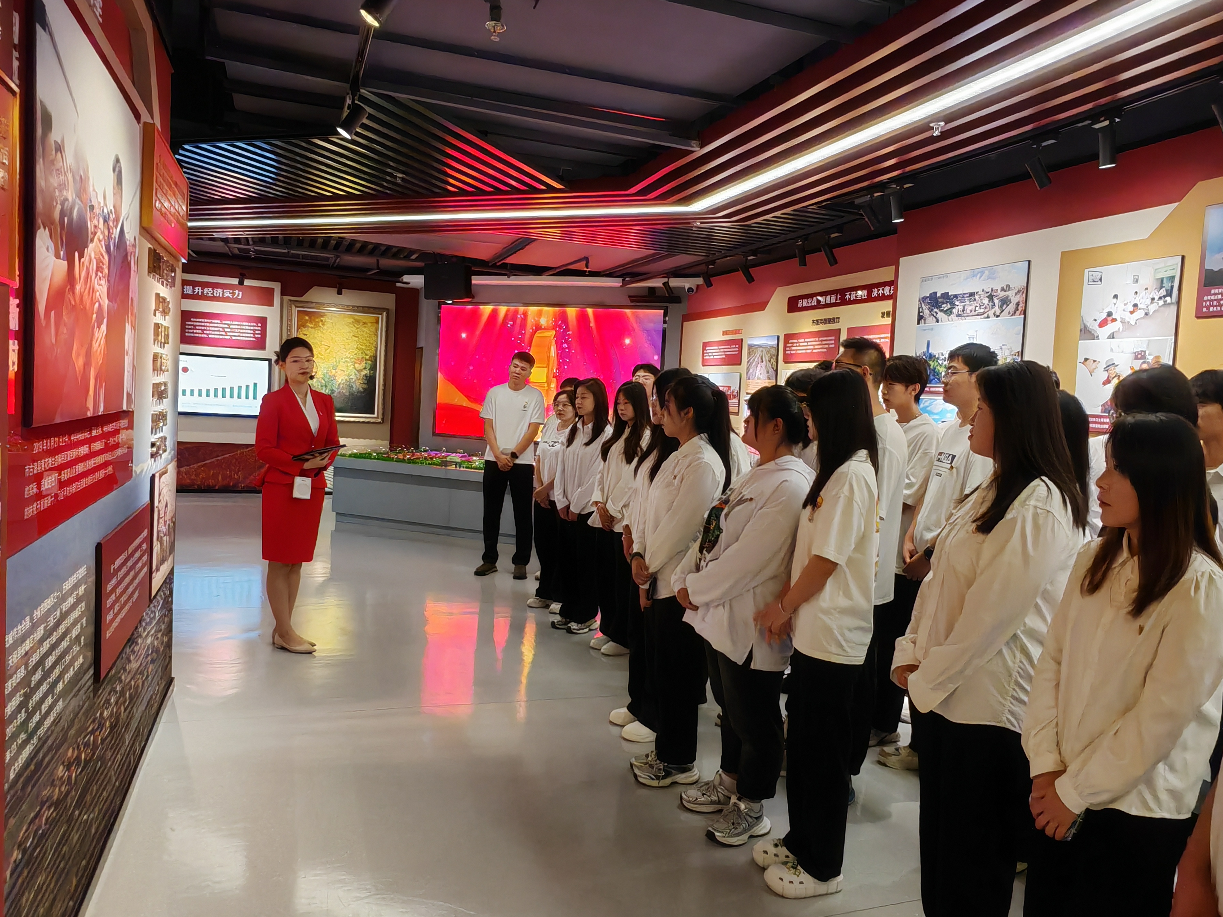 師生們?cè)谥v解員的帶領(lǐng)下依次參觀了教育館的序廳、主廳、智慧黨建廳、紅色文創(chuàng)廳、尾廳以及初心講堂。每一個(gè)展廳都承載著豐富的歷史內(nèi)涵,記錄了中國(guó)共產(chǎn)黨在不同歷史時(shí)期帶領(lǐng)人民取得的偉大成就。同學(xué)們認(rèn)真聆聽講解員的解說,仔細(xì)觀看館內(nèi)展出的珍貴圖片、文獻(xiàn)資料、歷史實(shí)物和視頻影像,全面了解了武威人民在黨的領(lǐng)導(dǎo)下,一步步克服困難、取得勝利的過程。隨后師生們觀看了紅色專題片《先鋒之光》。影片生動(dòng)再現(xiàn)了無數(shù)革命先烈為了國(guó)家獨(dú)立、民族解放和人民幸福所付出的巨大犧牲與貢獻(xiàn),從影片中汲取了愛國(guó)、拼搏、團(tuán)結(jié)和克難的精神力量。