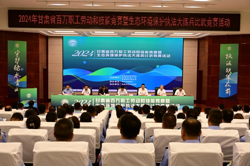 9月3日上午,由甘肅省生態(tài)環(huán)境廳、甘肅省總工會、甘肅省婦女聯(lián)合會主辦,武威市生態(tài)環(huán)境局協(xié)辦的甘肅省生態(tài)環(huán)境保護(hù)執(zhí)法大練兵比武競賽活動在學(xué)校菁英廳開幕,甘肅省生態(tài)環(huán)境廳副廳長劉文璽、省司法廳副廳長何雯、省婦聯(lián)一級巡視員崔海華、武威市人民政府副市長陳一夫、市生態(tài)局局長張有恒、學(xué)校黨委書記王宏、校長、黨委副書記張開禮,省生態(tài)環(huán)境廳、省總工會、省婦聯(lián)、省司法廳、武威市人民政府有關(guān)領(lǐng)導(dǎo),省生態(tài)環(huán)境廳機(jī)關(guān)處室、直屬單位相關(guān)負(fù)責(zé)同志,武威市生態(tài)環(huán)境局、學(xué)校考試培訓(xùn)中心等單位負(fù)責(zé)同志共100余人參加了開幕式。