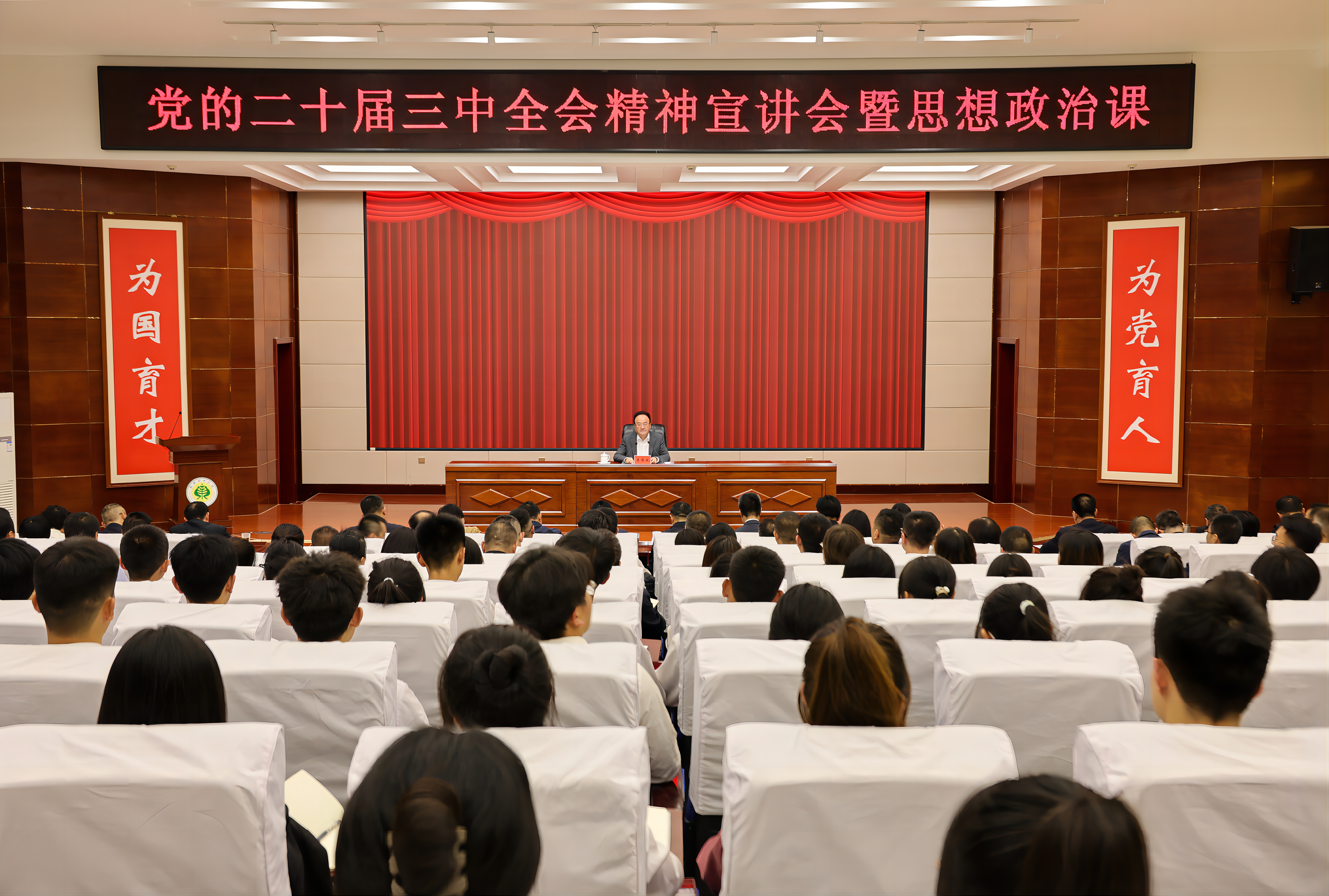 9月23日,市委書記王國(guó)斌來到武威職業(yè)學(xué)院,調(diào)研學(xué)院發(fā)展和思想政治建設(shè)情況,向廣大師生宣講黨的二十屆三中全會(huì)精神,講授思想政治課。王國(guó)斌勉勵(lì)青年學(xué)生牢記習(xí)近平總書記對(duì)新時(shí)代青年的殷切寄語(yǔ),學(xué)深悟透黨的二十屆三中全會(huì)精神,胸懷理想、激揚(yáng)青春,以青春之我、奮斗之我,勇?lián)鷷r(shí)代使命任務(wù),在中國(guó)式現(xiàn)代化武威實(shí)踐中放飛青春夢(mèng)想。王國(guó)斌從進(jìn)一步全面深化改革的重大意義、重大成就、重大部署、重大舉措等方面對(duì)黨的二十屆三中全會(huì)精神進(jìn)行了宣講和闡釋,并與學(xué)院師生分享了學(xué)習(xí)感悟和體會(huì)。他強(qiáng)調(diào),黨的二十屆三中全會(huì)對(duì)深化教育綜合改革作出系統(tǒng)部署,提出了一系列重點(diǎn)舉措,為我們深化教育領(lǐng)域綜合改革指明了實(shí)踐路徑。要全面貫徹落實(shí)全會(huì)關(guān)于深化教育綜合改革的新部署新要求,系統(tǒng)謀劃武威教育改革實(shí)踐路徑,抓實(shí)抓細(xì)各項(xiàng)改革任務(wù),確保教育領(lǐng)域綜合改革取得實(shí)實(shí)在在成效。王國(guó)斌強(qiáng)調(diào),推進(jìn)中國(guó)式現(xiàn)代化武威實(shí)踐,需要廣大青年奮發(fā)有為、勇挑大梁,展現(xiàn)新作為、干出新業(yè)績(jī)。希望青年學(xué)子自覺沿著習(xí)近平總書記指引的方向茁壯成長(zhǎng),以堅(jiān)定信念把穩(wěn)思想之舵,以擔(dān)當(dāng)實(shí)干實(shí)現(xiàn)人生價(jià)值,以高強(qiáng)本領(lǐng)夯實(shí)發(fā)展之基,以實(shí)干篤行書寫人生精彩,在追逐夢(mèng)想的新征程上描繪無悔于青春的絢麗畫卷。廣大教師要堅(jiān)守教書育人、立德樹人的使命,做學(xué)生錘煉品格、學(xué)習(xí)知識(shí)、創(chuàng)新思維、奉獻(xiàn)祖國(guó)的引路人。職業(yè)學(xué)院要把創(chuàng)建武威職業(yè)技術(shù)大學(xué)作為學(xué)校實(shí)現(xiàn)跨越式發(fā)展的頭等大事,以創(chuàng)建本科層次職業(yè)學(xué)校為抓手,借勢(shì)改革東風(fēng),持續(xù)優(yōu)化辦學(xué)條件,加力提速推進(jìn)武威職業(yè)技術(shù)大學(xué)創(chuàng)建工作,力爭(zhēng)早日辦成屬于武威人民的第一所本科院校。市領(lǐng)導(dǎo)華偉、王強(qiáng)參加,武威職業(yè)學(xué)院師生代表聆聽了宣講。
