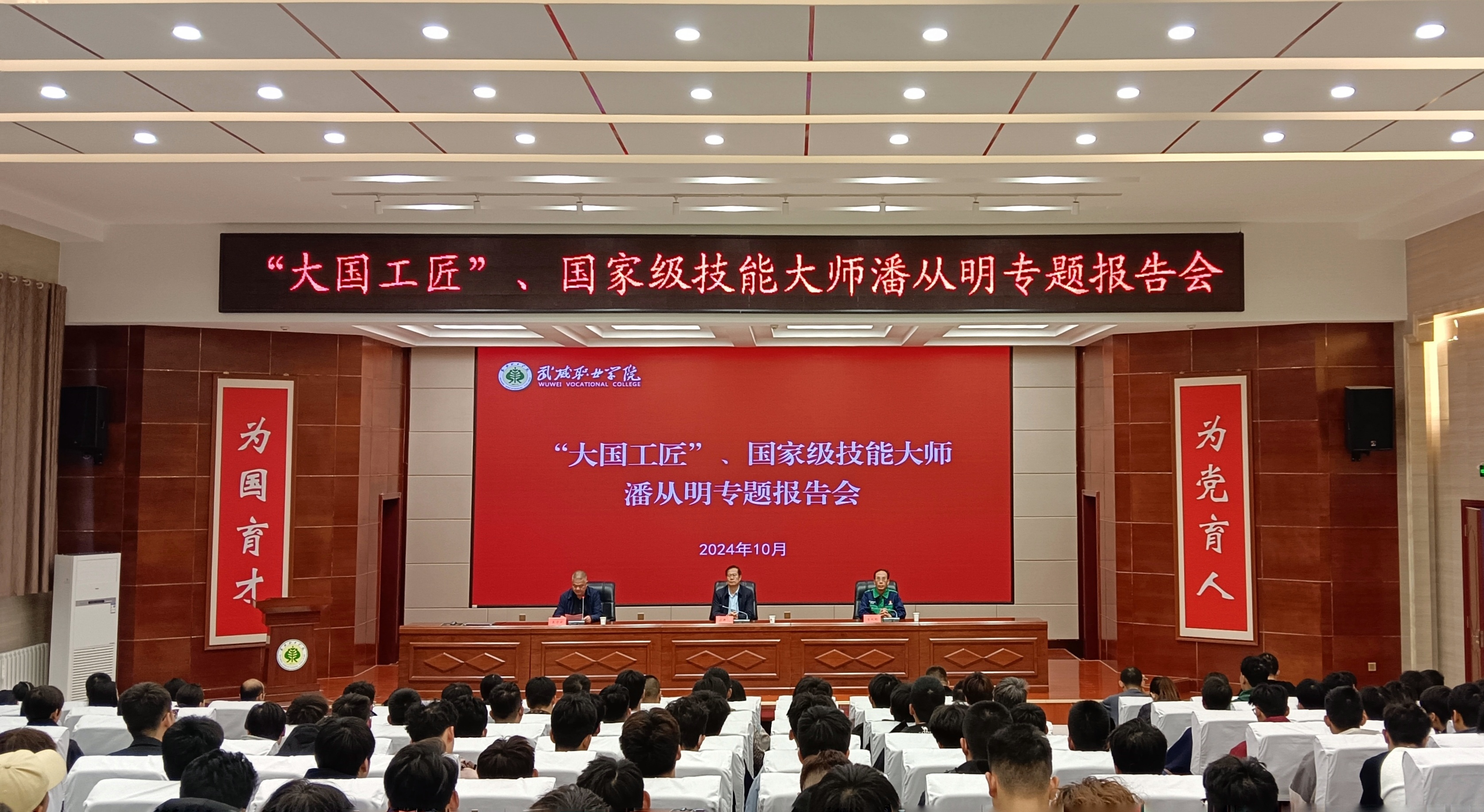 為深入學習貫徹落實習近平總書記關(guān)于大力弘揚勞模精神、勞動精神、工匠精神的重要指示精神,充分發(fā)揮廣大勞模以及各行各業(yè)先進人物榜樣的引領(lǐng)作用,努力培養(yǎng)更多的大國工匠、能工巧匠。10月12日,學校邀請“大國工匠”全國勞動模范、全國“五一”勞動獎?wù)芦@得者潘從明大師來我校作專題報告。校長、黨委副書記張開禮出席報告會,學校黨委委員、副校長王守云主持報告會。師生代表共計220余人參加了報告會。