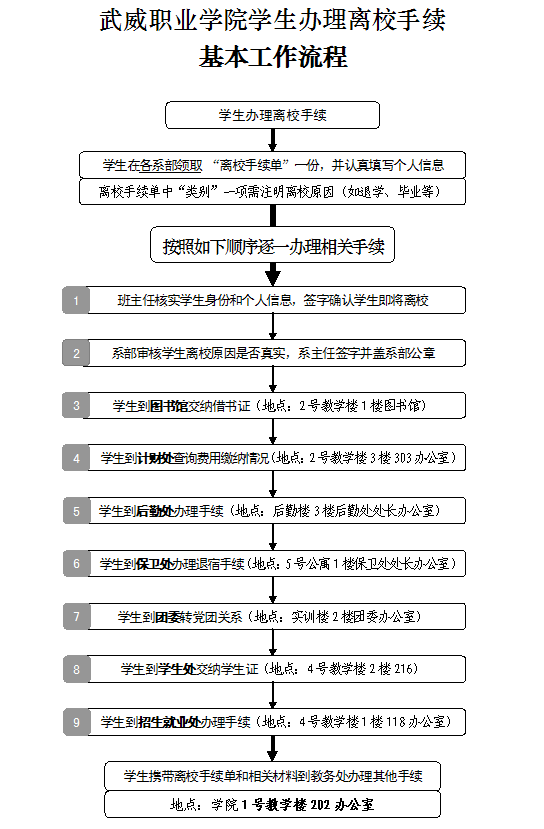 學院大中專學生辦理離校手續(xù)基本工作流程