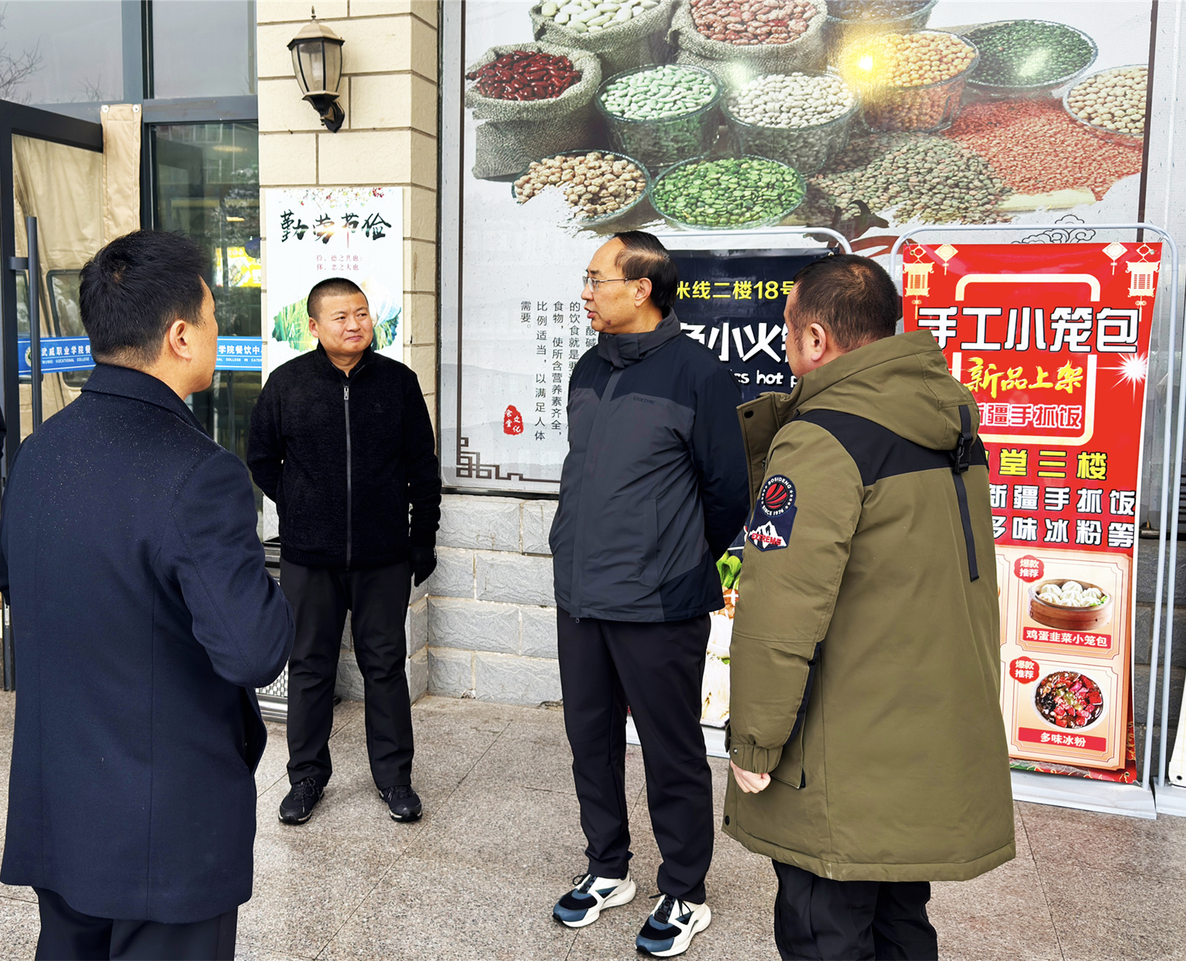 11月24日,河西走廊迎來(lái)入冬第一場(chǎng)瑞雪,為切實(shí)做好師生餐飲保障和食品安全,黨委書記王宏深入學(xué)生食堂檢查指導(dǎo),后勤管理處處長(zhǎng)占發(fā)禹及相關(guān)負(fù)責(zé)同志陪同檢查。