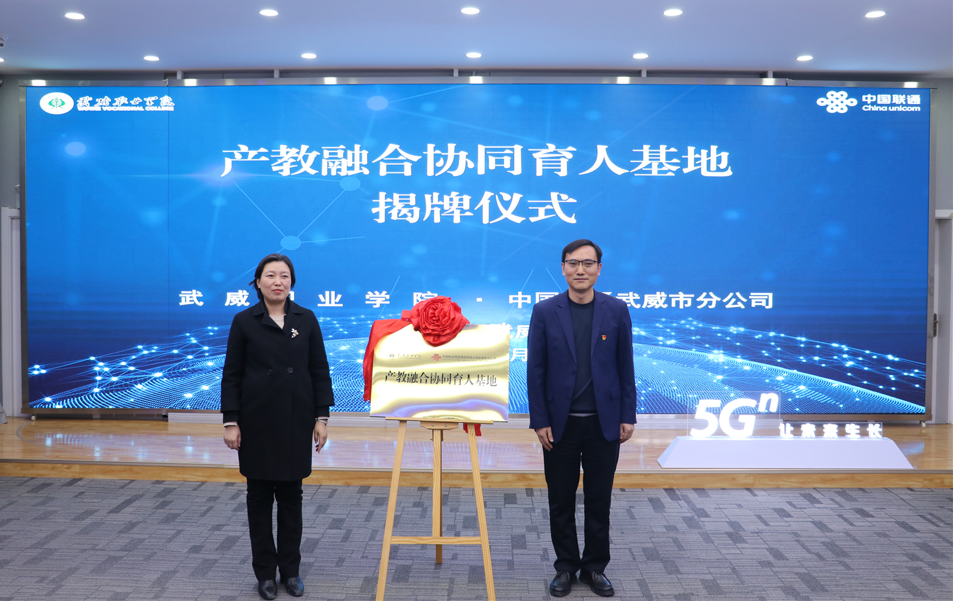 12月19日,學(xué)校與中國聯(lián)通武威市分公司校企戰(zhàn)略合作協(xié)議簽約儀式在聯(lián)通數(shù)字經(jīng)濟(jì)創(chuàng)新展示中心舉行。武威市教育局局長(zhǎng)王娟、中國聯(lián)通武威市分公司總經(jīng)理許勇、學(xué)校黨委書記王宏、校長(zhǎng)李海軍出席簽約儀式。學(xué)校黨委委員、副校長(zhǎng)何毅主持儀式。