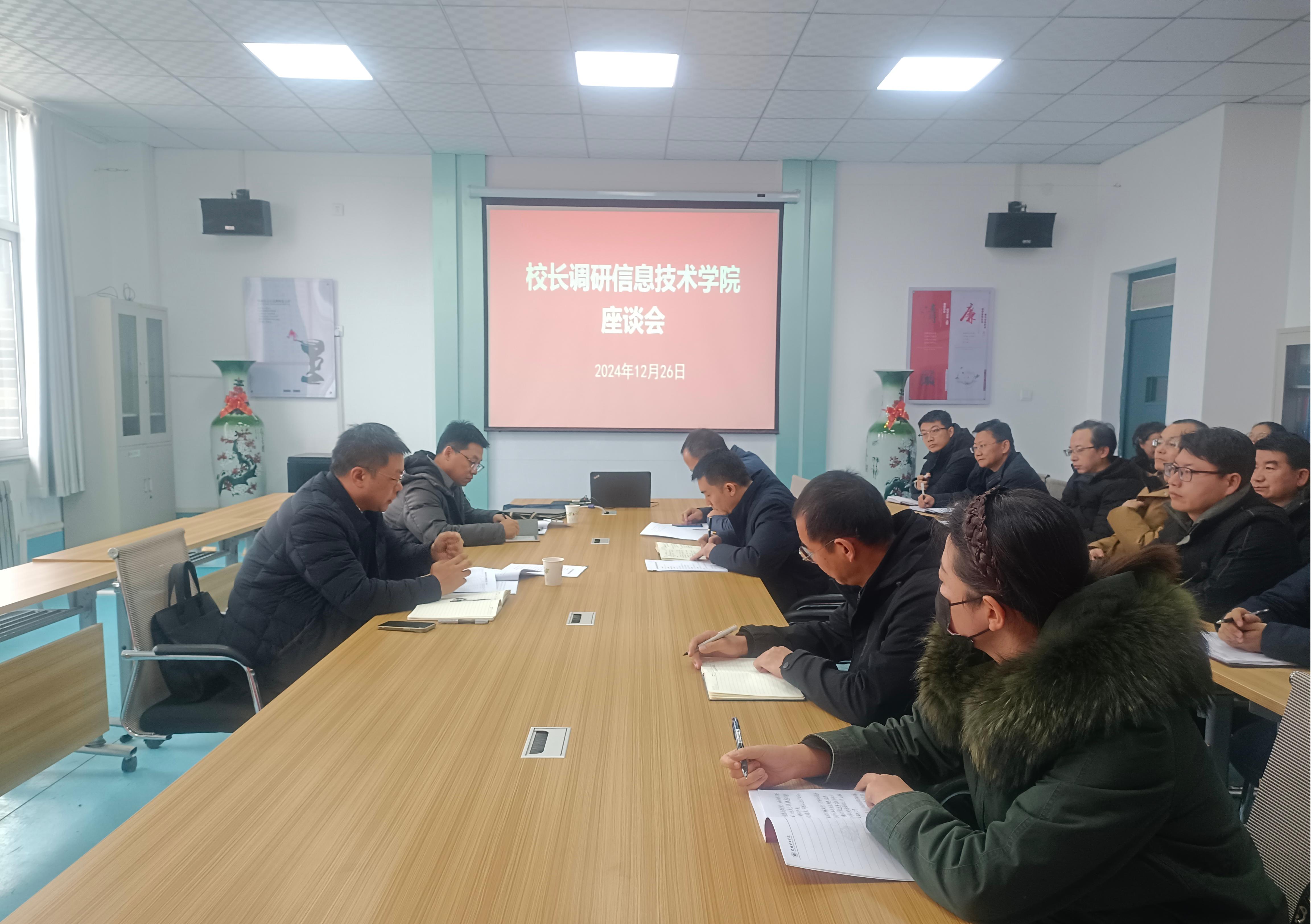 12月26日,校長李海軍深入信息技術(shù)學(xué)院,通過實地走訪、座談交流等形式開展調(diào)研,辦公室主任董鵬陪同調(diào)研。信息技術(shù)學(xué)院負(fù)責(zé)人和教師代表參加了調(diào)研活動。