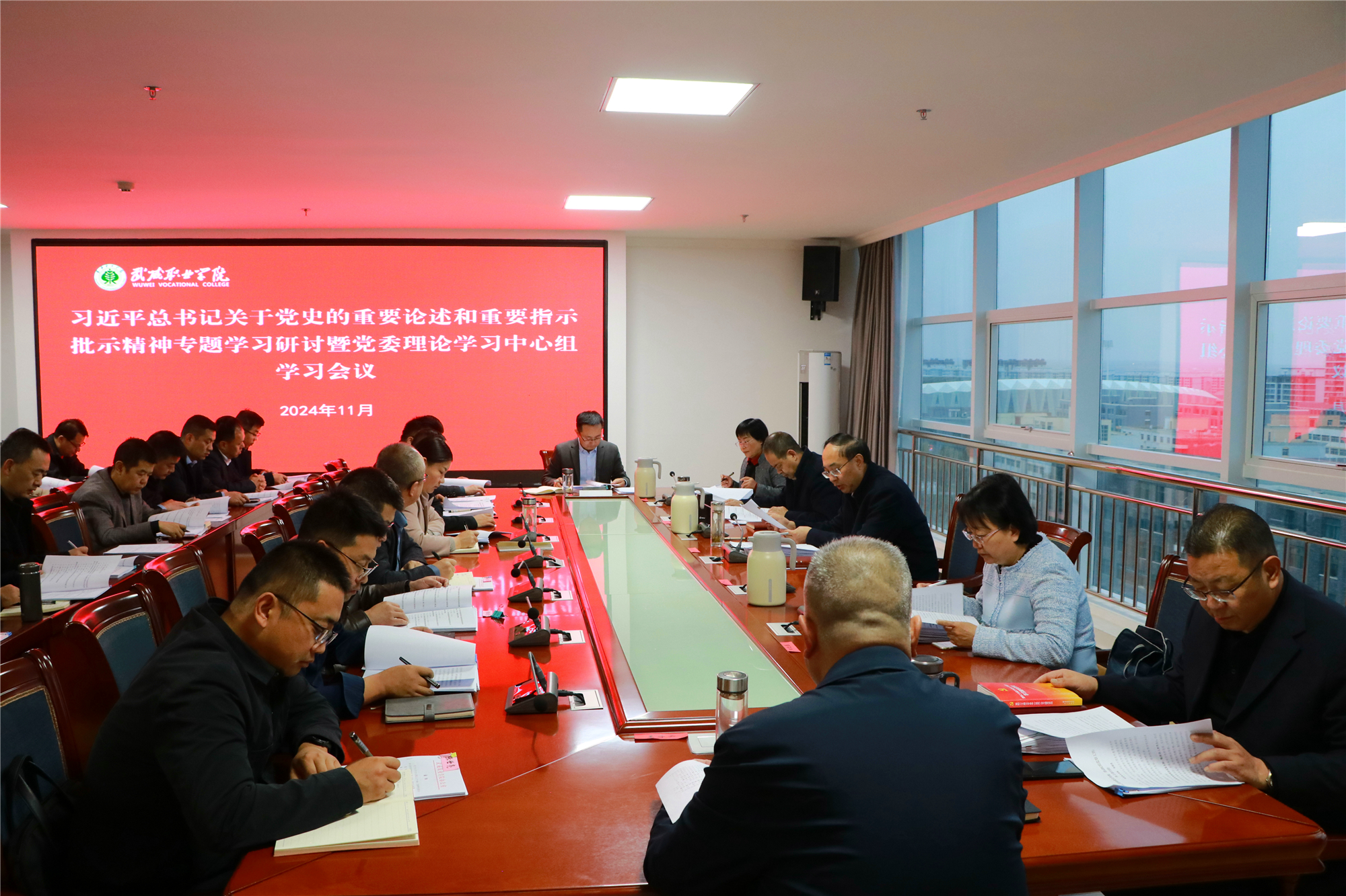 11月15日上午,學校召開習近平總書記關于黨史的重要論述和重要指示批示精神專題學習研討暨黨委理論學習中心組學習會議。學校黨委領導班子成員,各部門、二級學院主要負責人,各黨總支與直屬黨支部書記參加學習會議。黨委書記王宏主持會議并講話。