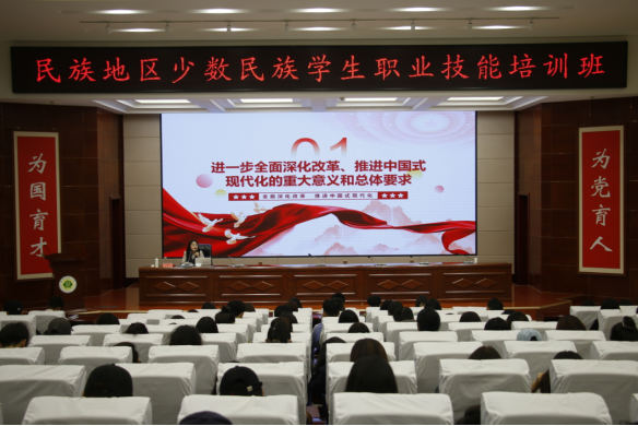 為推動(dòng)落實(shí)國(guó)家穩(wěn)崗就業(yè)政策部署,進(jìn)一步提升我校高校畢業(yè)生的綜合就業(yè)能力,2024年全省“三項(xiàng)計(jì)劃”試點(diǎn)示范項(xiàng)目“民族地區(qū)少數(shù)民族學(xué)生職業(yè)技能培訓(xùn)”在我校菁英廳正式開班。