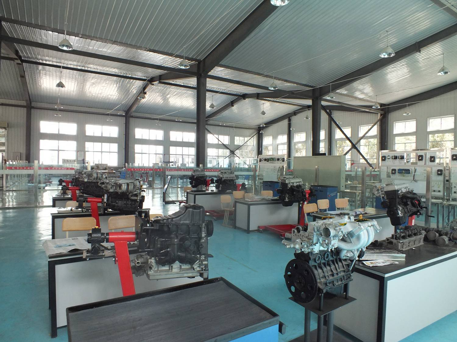 汽車實訓中心包括汽車發(fā)動機拆裝實訓區(qū)、發(fā)動機電控實訓區(qū)、汽車底盤拆裝實訓區(qū)、汽車底盤電控實訓區(qū)。