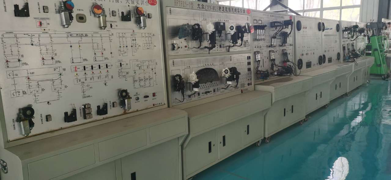 有發(fā)動機電控實訓臺、汽車模擬測試臺、故障分析儀等,其中,發(fā)動機綜合檢測實訓臺可對發(fā)動機進行起動、加速、減速等工況的實踐操作,全面展示發(fā)動機的組成結構與工作過程。安裝配備檢測端子,可直接檢測汽車發(fā)動機傳感器、執(zhí)行器、發(fā)動機控制單元的電信號。是一個現(xiàn)代化且實用的汽車電子技術教學體系的組成部分。