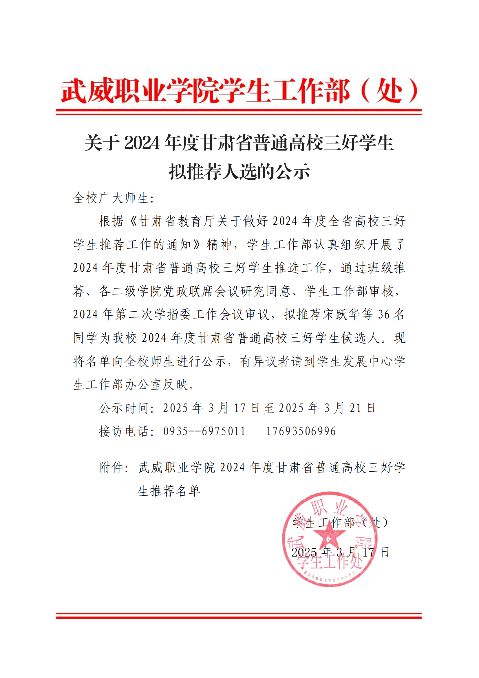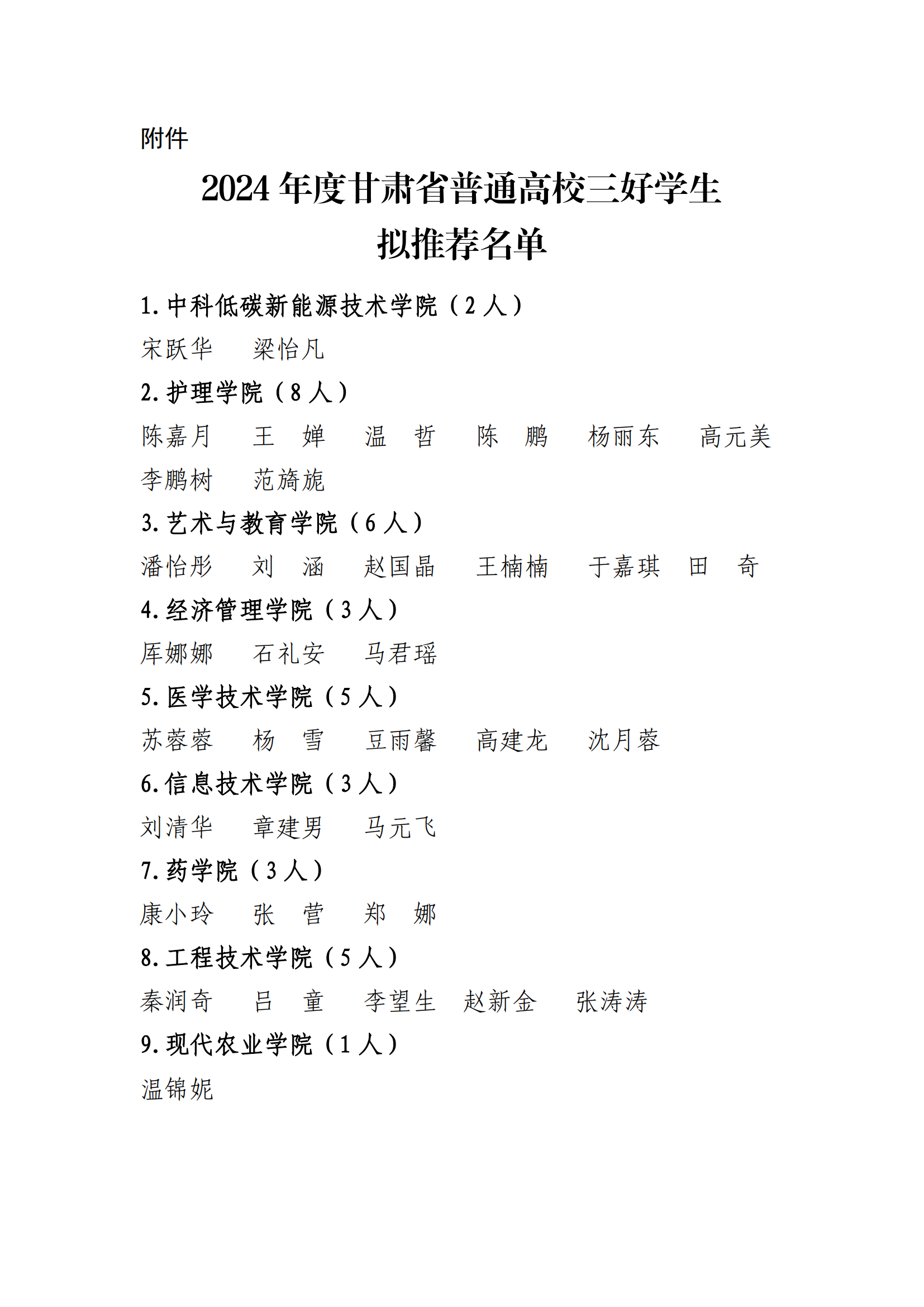 關于2024年度甘肅省普通高校三好學生擬推薦人選的公示