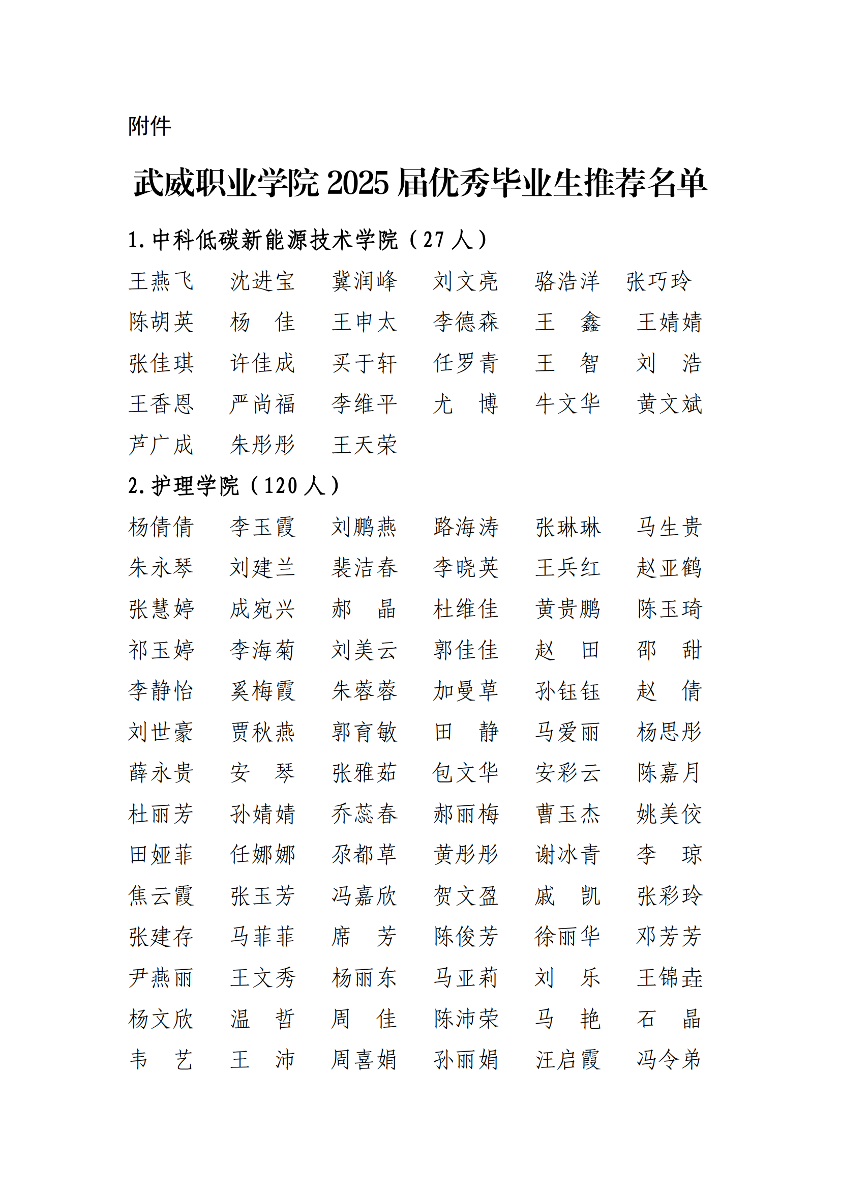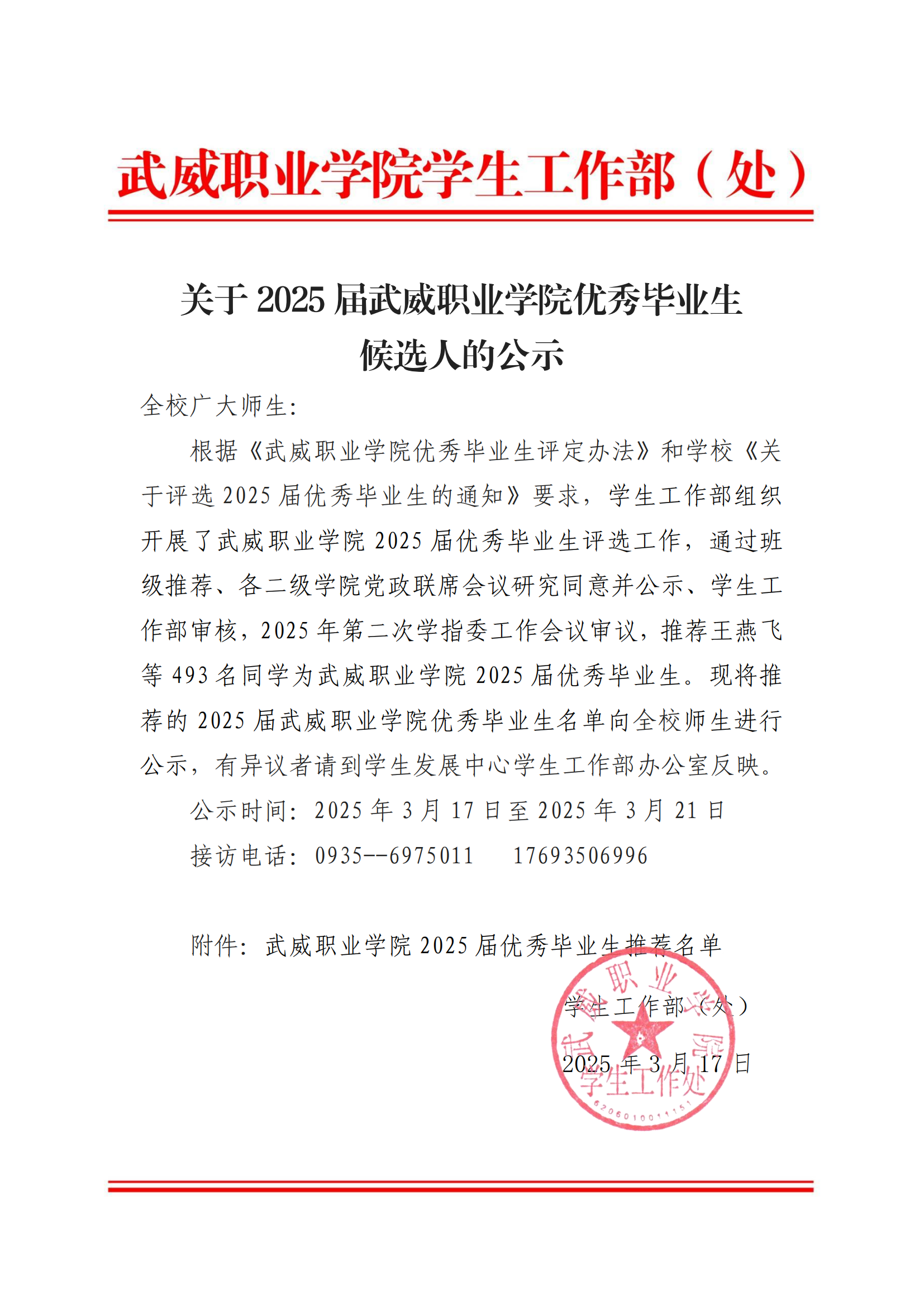 關于2025屆武威職業(yè)學院優(yōu)秀畢業(yè)生候選人的公示