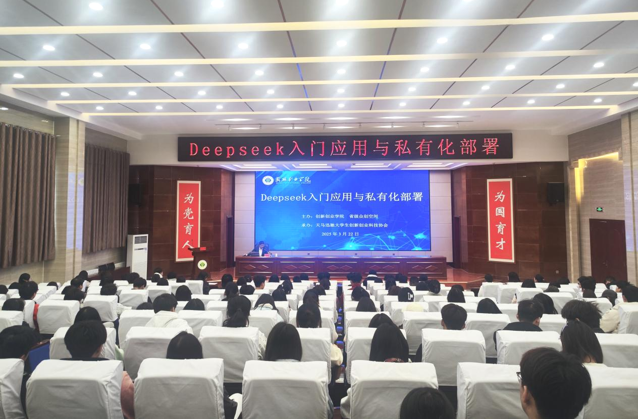 為深化校企合作、推動人工智能技術(shù)在職業(yè)教育與創(chuàng)新實踐中的應(yīng)用,3月22日,創(chuàng)新創(chuàng)業(yè)學(xué)院特邀武威市大數(shù)據(jù)公司工程師劉曉寶,開展了“DeepSeek入門應(yīng)用與私有化部署”專題培訓(xùn),學(xué)校200余名師生參加了培訓(xùn)。