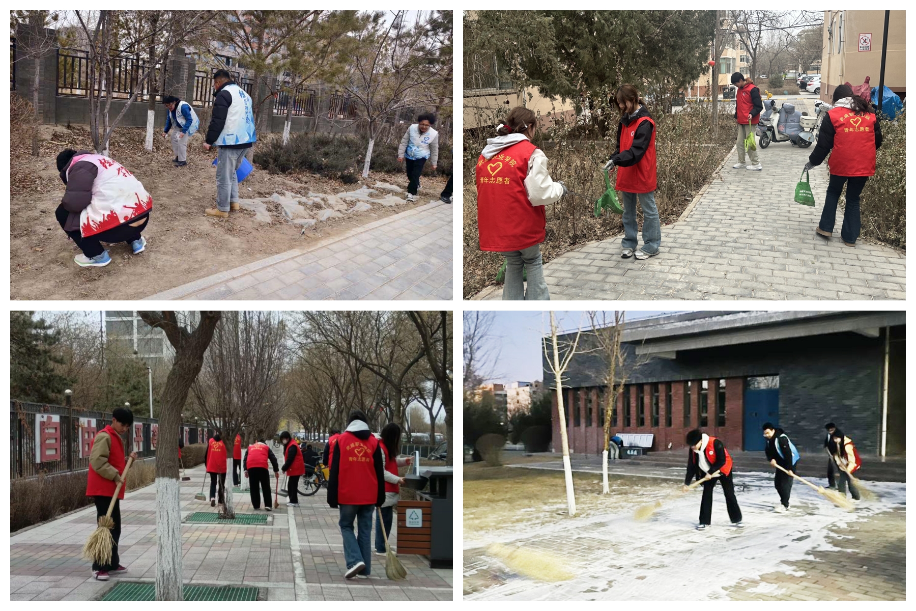 開展美麗校園志愿服務活動。3月5日,校團委組織開展“學雷鋒日”集中活動,各二級學院320余名志愿者在學校東門及北門外周邊區(qū)域開展衛(wèi)生清掃,清掃人行道枯葉、擦洗公交站臺、清理綠化帶雜物、擺放共享單車、撿拾地面煙頭、擦洗垃圾箱、條凳及綠化帶隔離欄。
