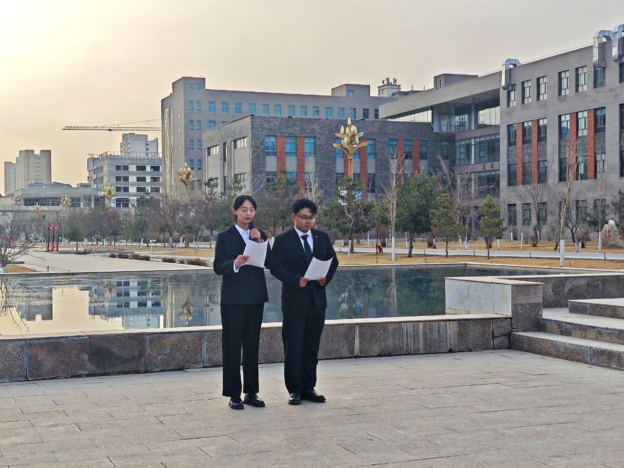 ?2025年3月31日早上,藥學院全體師生在圖書館前廣場舉行升國旗儀式。