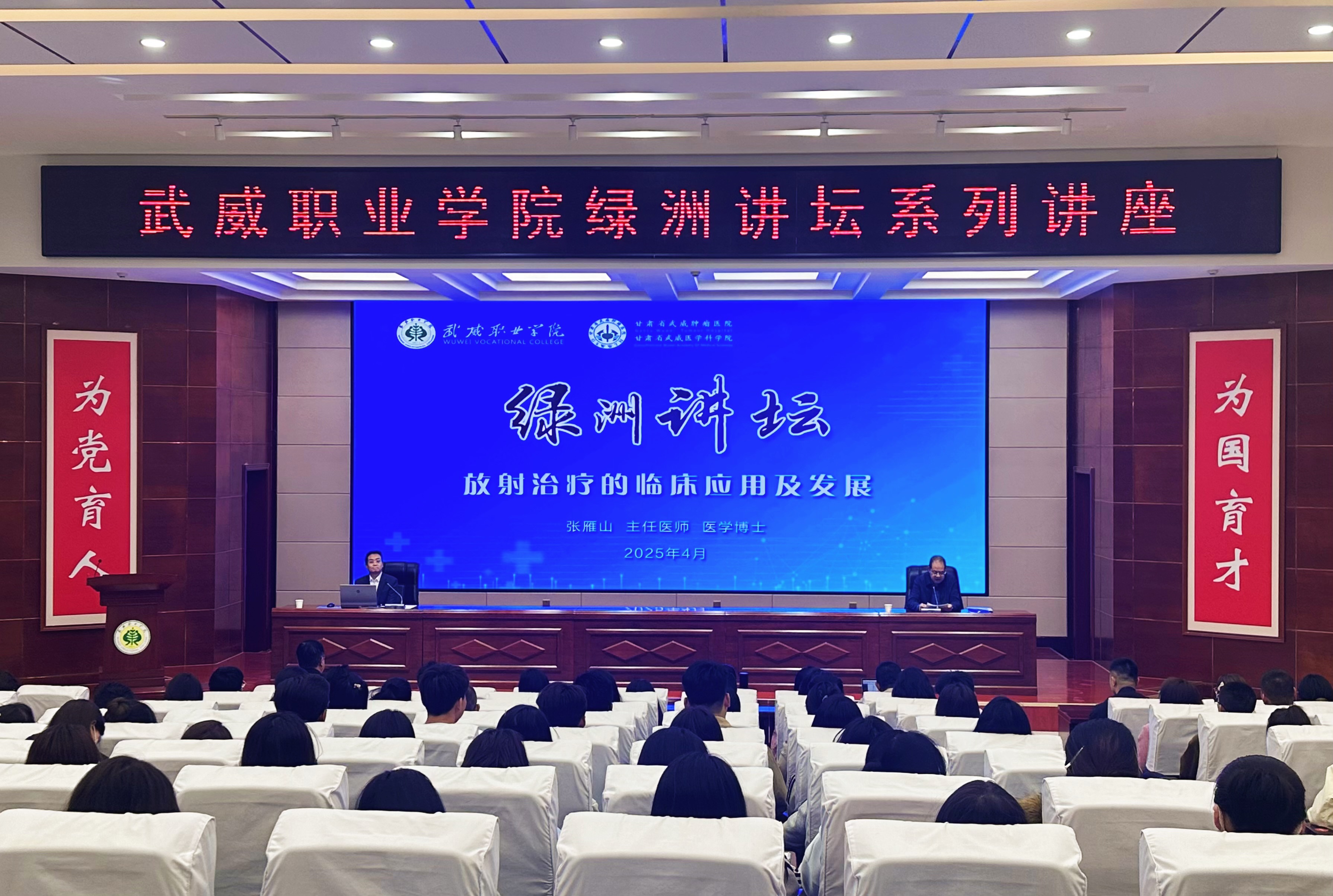 4月17日,學(xué)校特邀甘肅省武威腫瘤醫(yī)院副院長、重離子中心主任張雁山博士,在菁英廳作了“放射治療臨床應(yīng)用及發(fā)展”專題講座。學(xué)校黨委副書記翟存祥主持講座,醫(yī)學(xué)技術(shù)學(xué)院、藥學(xué)院、護理學(xué)院教師,2024級放射治療技術(shù)專業(yè)學(xué)生共210余人聆聽了講座。