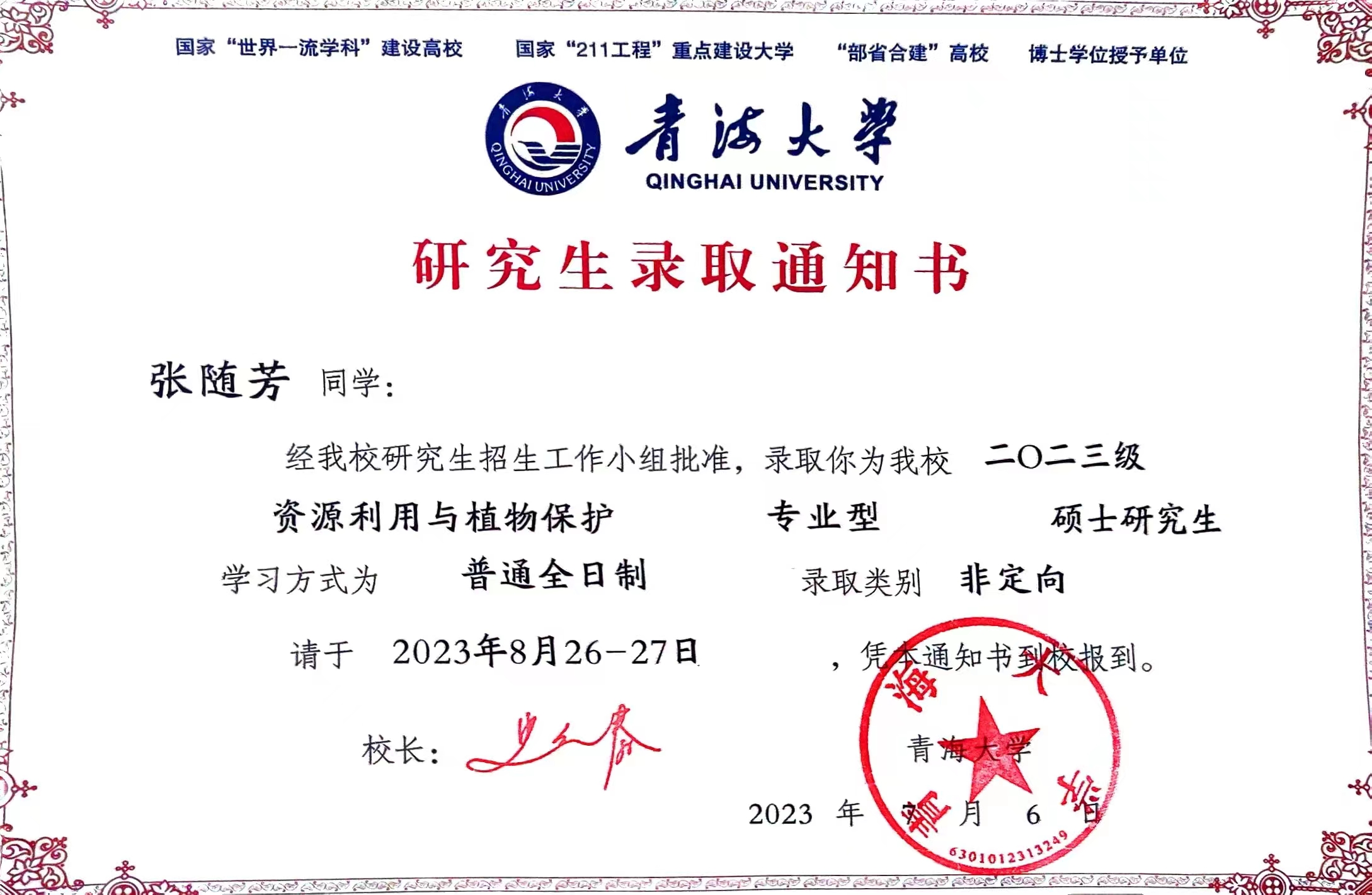 張隨芳,2018級(jí)植物保護(hù)與檢疫技術(shù)大專班,2021年考取河西學(xué)院農(nóng)學(xué)本科專業(yè),2023年考取青海大學(xué)資源利用與植物保護(hù)專業(yè)碩士研究生。