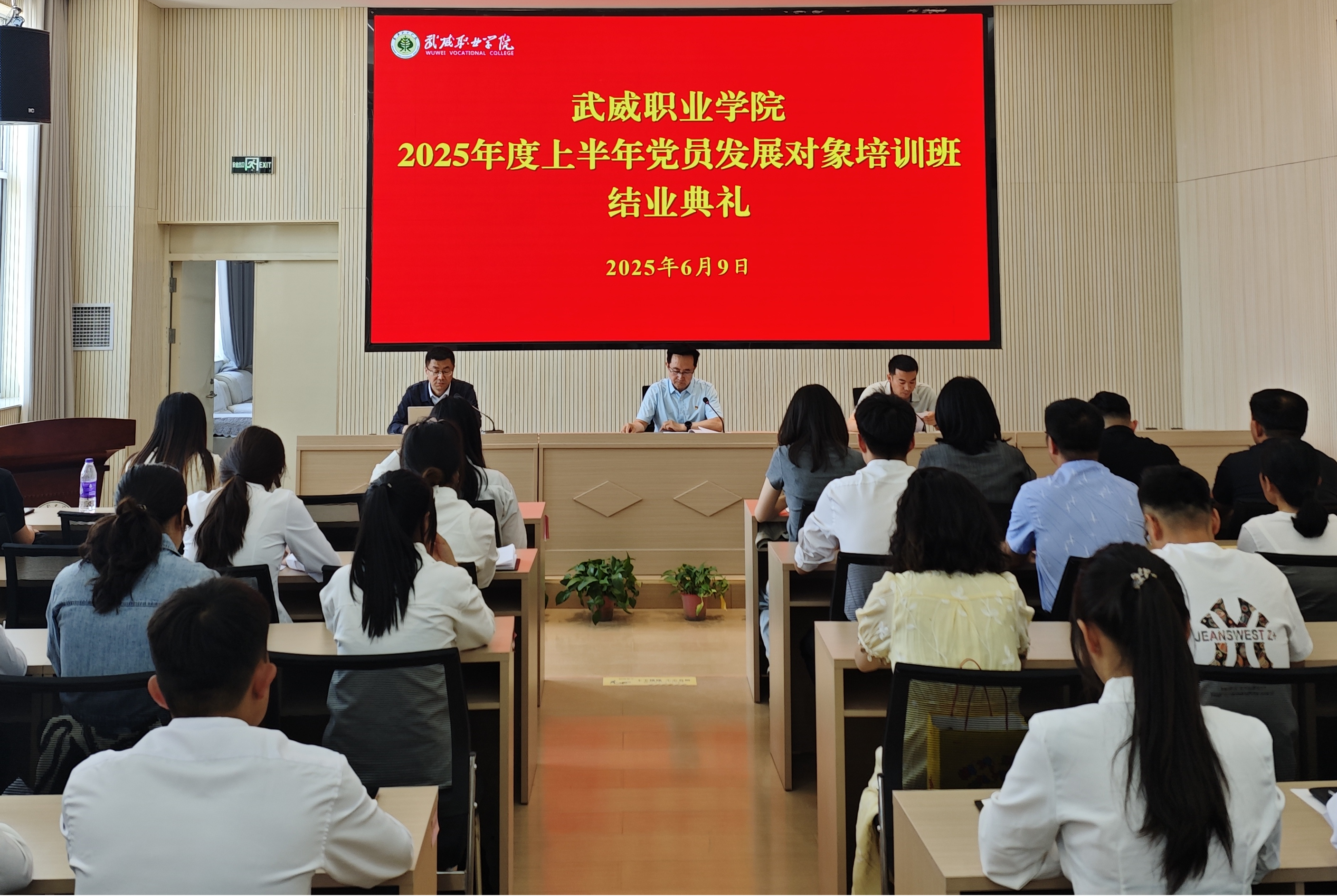 6月9日,學(xué)校在圖書館二樓報(bào)告廳舉行了2025年度上半年黨員發(fā)展對(duì)象培訓(xùn)班結(jié)業(yè)典禮,黨委委員、黨委組織部(人事處)部長(zhǎng)任陶出席典禮并講話,信息技術(shù)學(xué)院黨總支書記史子新,各基層黨組織組織員,學(xué)校全體黨員發(fā)展對(duì)象參加會(huì)議。會(huì)議由黨委組織部(人事處)副部長(zhǎng)許中璞主持。