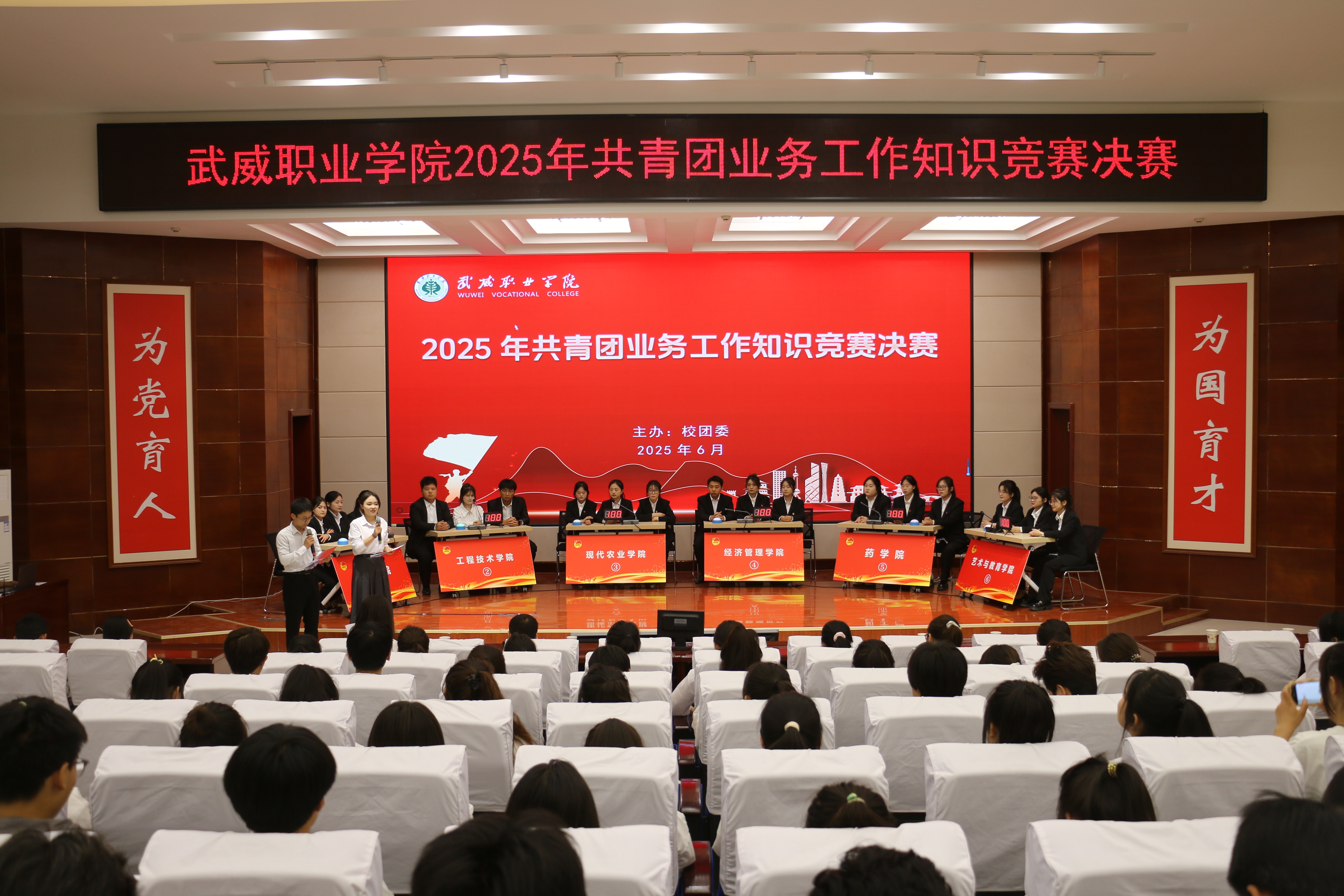 為進一步提升基層團干部業(yè)務知識水平,增強廣大團員青年歷史使命感與責任感。6月13日,校團委在菁英廳舉辦共青團業(yè)務知識競賽決賽,二級學院團委書記及團員代表200余人觀看比賽。