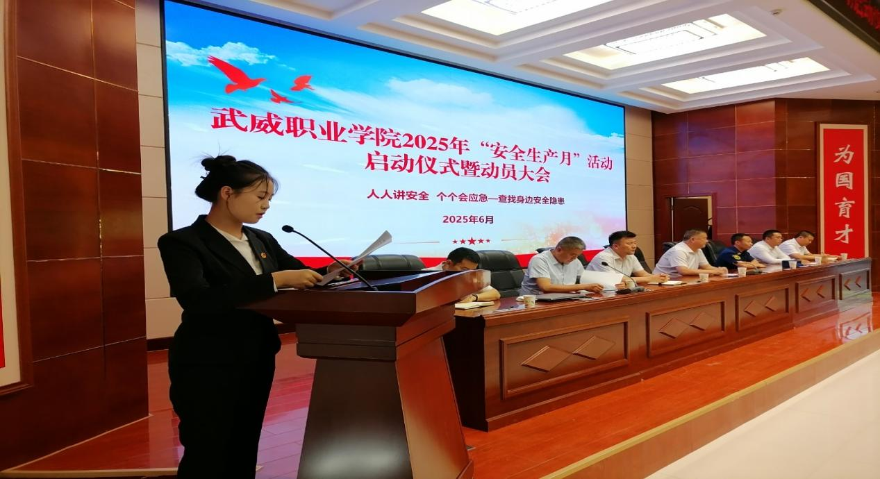 6月16日下午,“安全生產(chǎn)月”啟動儀式暨動員大會在學(xué)校菁英廳舉行。學(xué)校黨委委員、副校長王守云作動員講話,強(qiáng)調(diào)校園安全是辦學(xué)治校的生命線,要求全校師生以高度的責(zé)任感積極參與各項活動,將安全理念內(nèi)化于心、外化于行。安全保衛(wèi)處處長李欣對活動作了詳細(xì)安排。學(xué)生代表王盼發(fā)出倡議,號召同學(xué)們自覺學(xué)習(xí)安全知識、遵守安全規(guī)范、擔(dān)當(dāng)安全責(zé)任。最后,師生代表在印有活動主題的承諾墻上鄭重簽名,表達(dá)踐行安全的堅定決心。