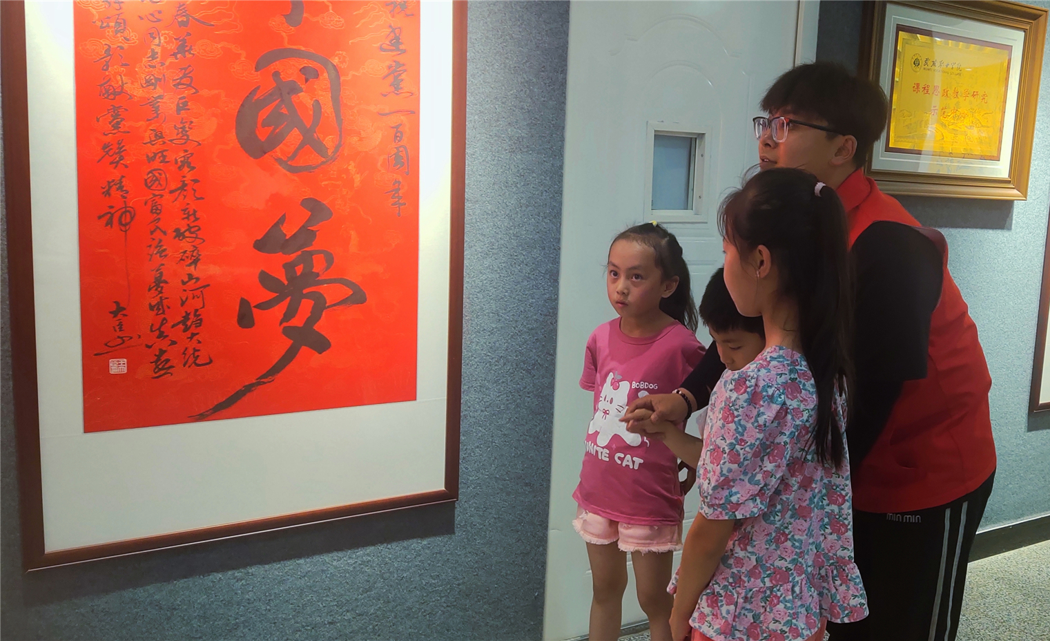 當(dāng)小朋友們走進(jìn)紅色文化藝術(shù)館,一幅幅絢麗多彩的文化長卷在眼前展開。在志愿者帶領(lǐng)下,他們輕聲誦讀書法作品,體會文字哲理,感受中國傳統(tǒng)書法藝術(shù)獨(dú)特魅力,在心靈深處種下熱愛傳統(tǒng)文化的種子。