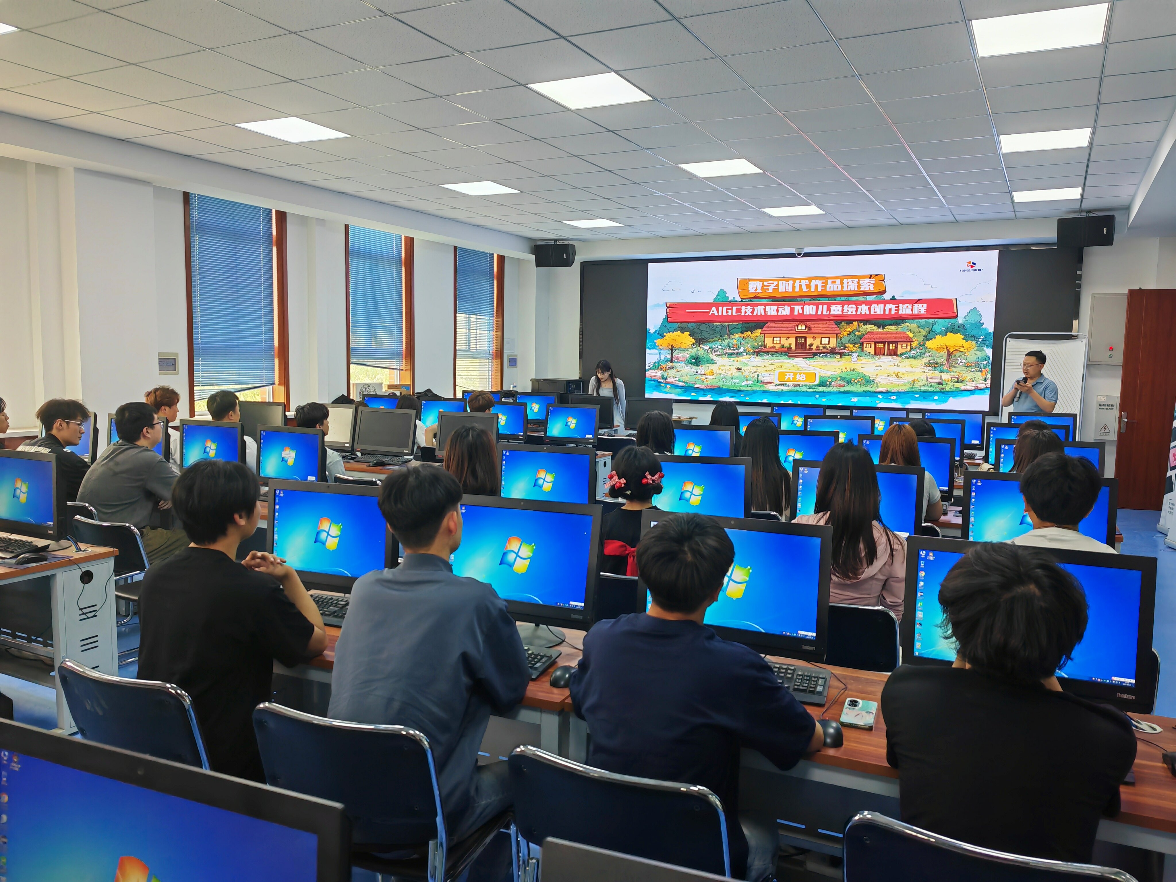 2025年5月28日下午,藝術(shù)與教育學(xué)院在篤行樓3樓10號機房舉辦了主題為“數(shù)字時代作品探索——AIGC技術(shù)驅(qū)動下的兒童繪本創(chuàng)作流程革新”的專題講座。本次講座特邀甘肅共創(chuàng)數(shù)媒科技有限公司資深數(shù)字藝術(shù)行業(yè)專家朱佩宇擔(dān)任主講。講座由副院長蘆小鵬主持。