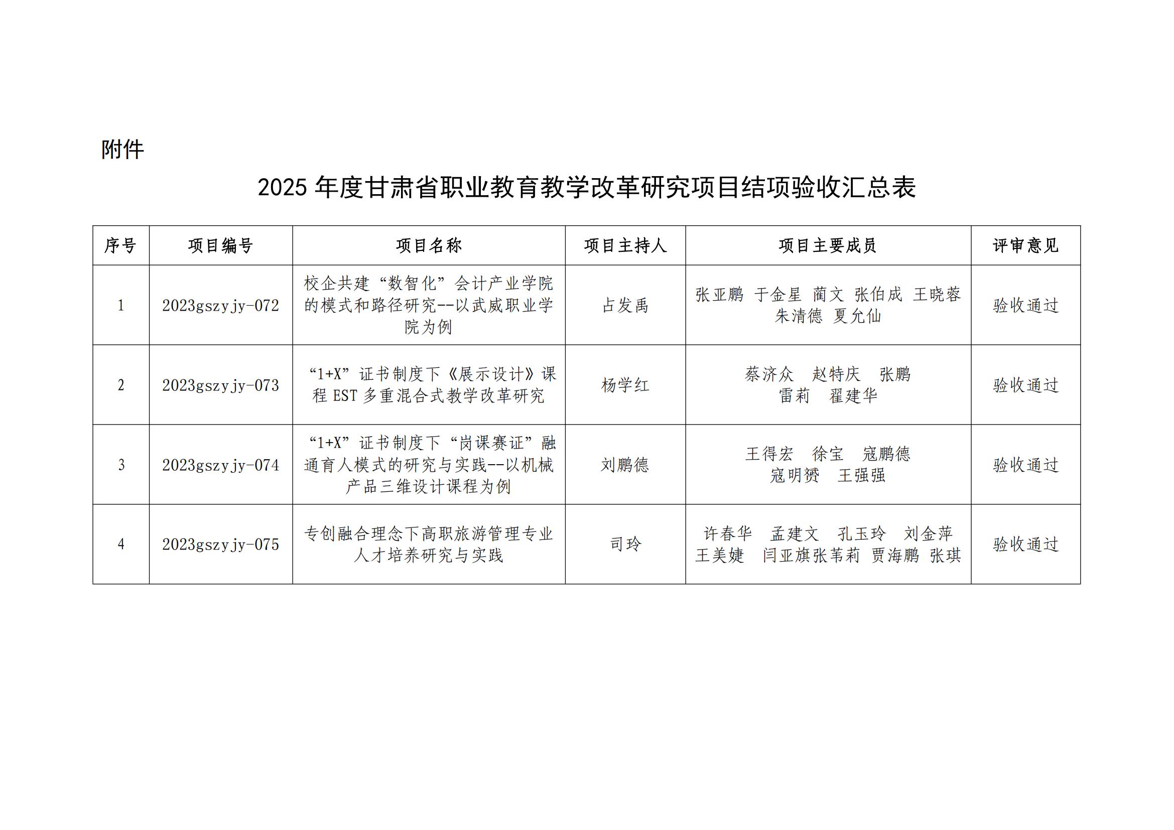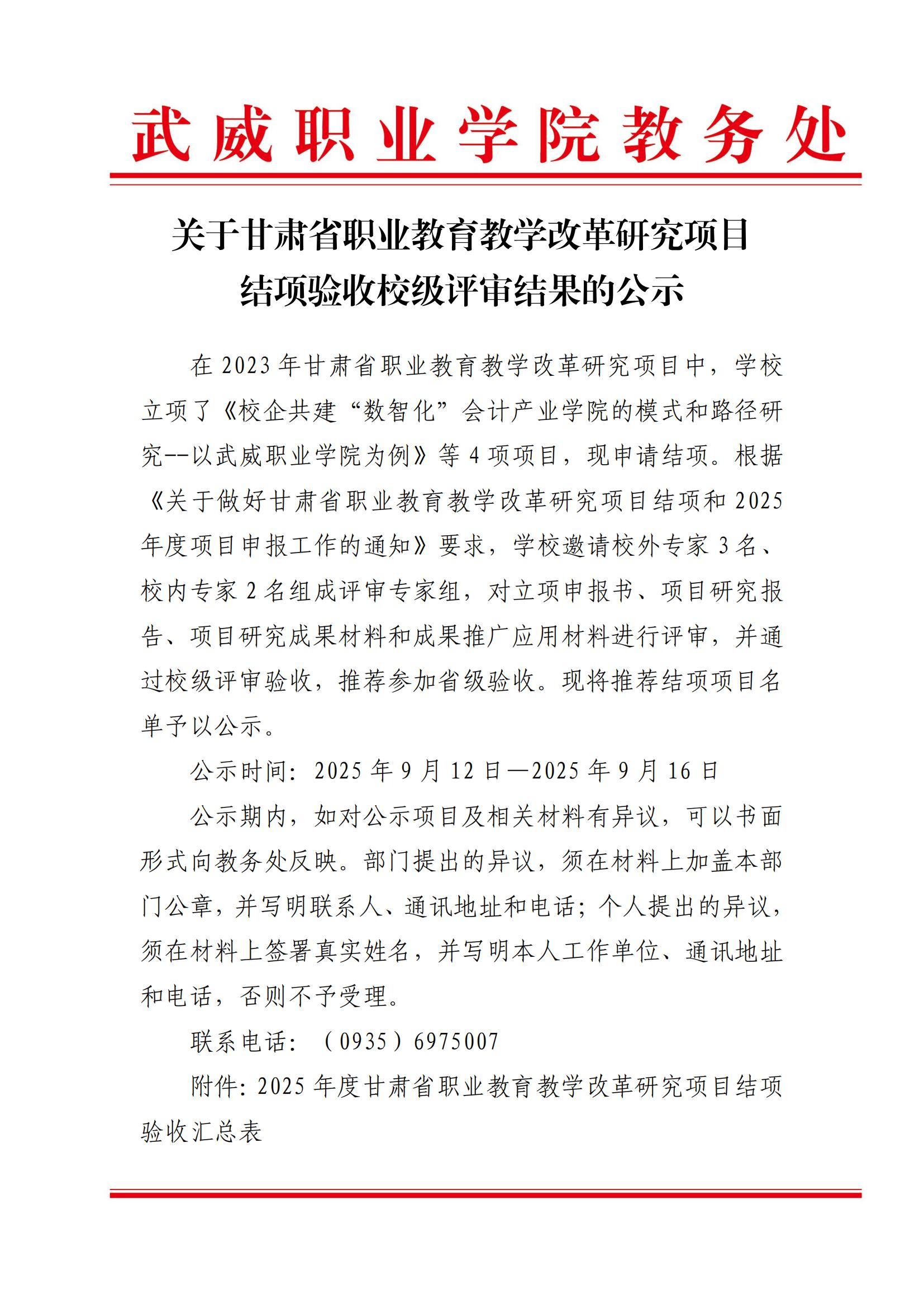 關(guān)于甘肅省職業(yè)教育教學(xué)改革研究項目結(jié)項驗收校級評審結(jié)果的公示