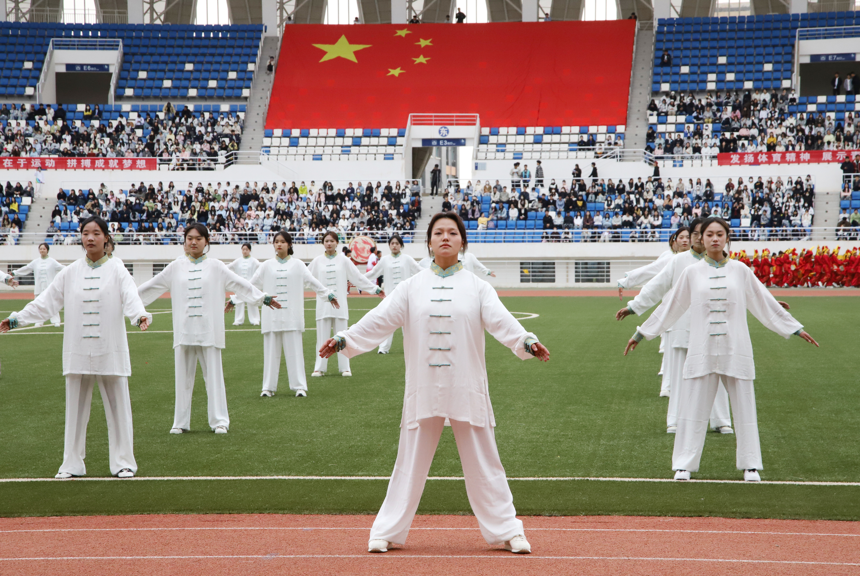體育教學(xué)成果展示將開幕式氣氛推向高潮。國(guó)家級(jí)非物質(zhì)文化遺產(chǎn)涼州攻鼓子,鼓聲鏗鏘有力,動(dòng)作整齊劃一,將傳統(tǒng)文化的厚重與激情展現(xiàn)得淋漓盡致;八段錦表演動(dòng)作舒展柔和,一招一式如行云流水,盡顯中華傳統(tǒng)養(yǎng)生文化的優(yōu)雅與寧靜;韻律操步伐輕盈、動(dòng)作有力,展現(xiàn)了武職大學(xué)子陽光向上、朝氣蓬勃的精神面貌。最后,藝術(shù)與教育學(xué)院老師們獻(xiàn)上男女四重唱《美麗中國(guó)》,悠揚(yáng)歌聲里滿含對(duì)祖國(guó)的贊美,引發(fā)全場(chǎng)共鳴。