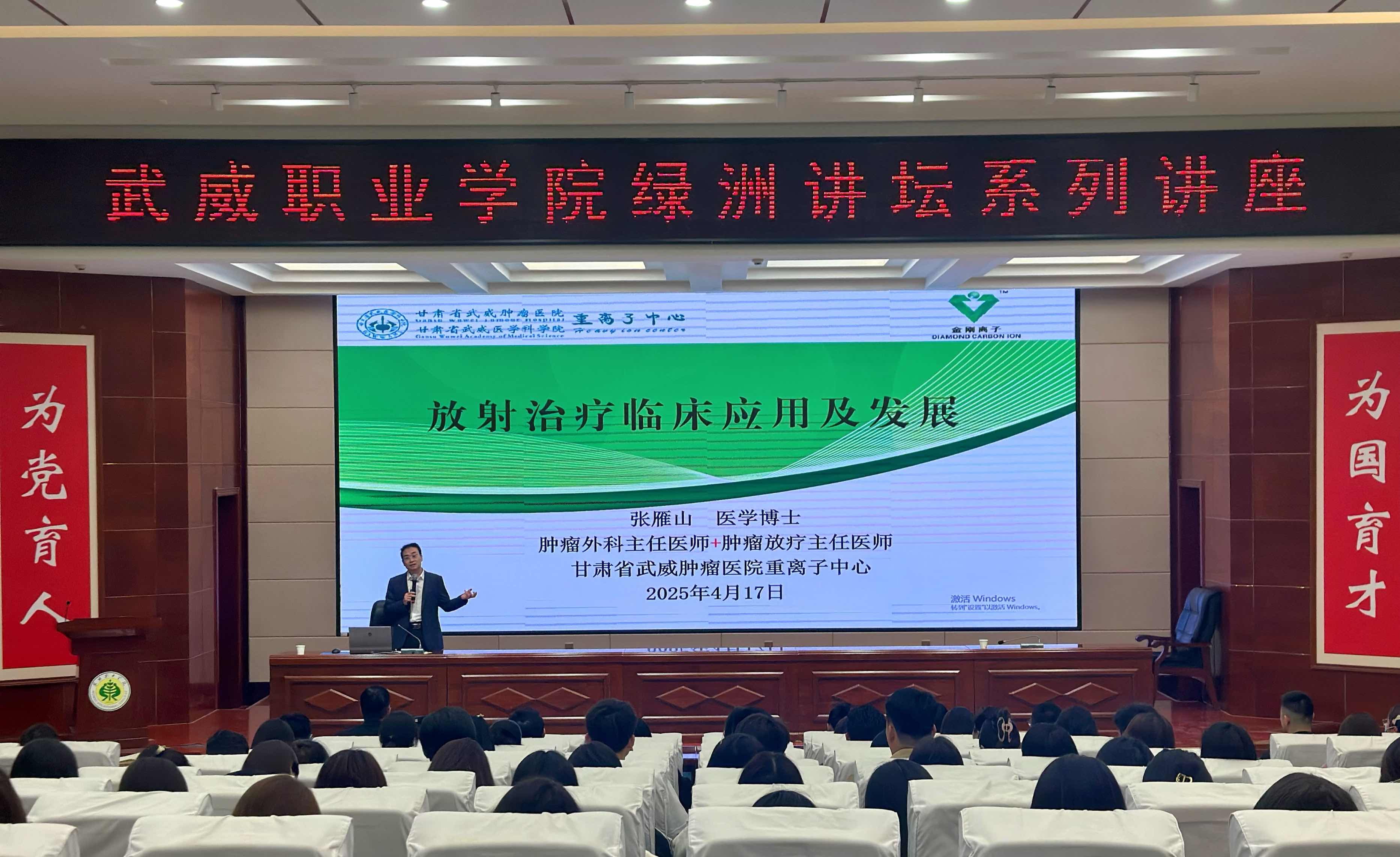4月17日,學(xué)校特邀甘肅省武威腫瘤醫(yī)院副院長、重離子中心主任張雁山博士,在菁英廳作了“放射治療臨床應(yīng)用及發(fā)展”專題講座。學(xué)校黨委副書記翟存祥主持講座,醫(yī)學(xué)技術(shù)學(xué)院、藥學(xué)院、護理學(xué)院教師,2024級放射治療技術(shù)專業(yè)學(xué)生共210余人聆聽了講座。