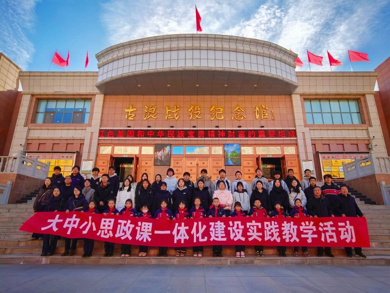 校園參觀結束,雙方共同前往學?!按笏颊n”實踐教學基地---古浪戰(zhàn)役紀念館,開展了一場生動而深刻的“大思政課”實踐教學活動。在莊嚴肅穆的紀念館內,全體人員通過觀看歷史文物、聆聽現(xiàn)場講解、緬懷革命先烈,深刻感悟了紅色江山的來之不易,接受了偉大的革命精神洗禮。