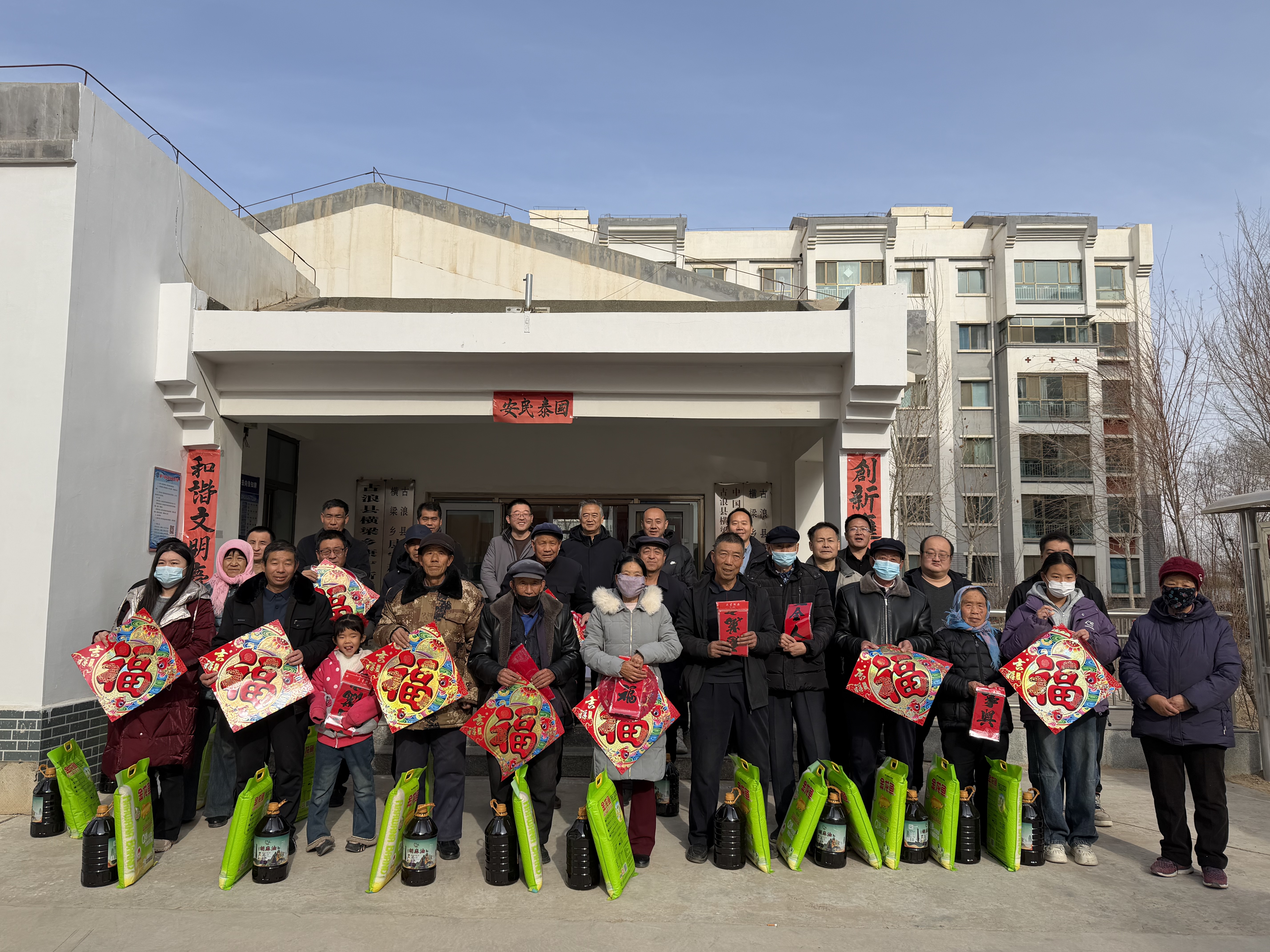 1月19日,學校在幫扶點古浪縣橫梁鄉(xiāng)康寧新村、幸福新村開展春節(jié)前走訪慰問和送溫暖、送春聯(lián)、送祝福活動。為困難群眾、結(jié)對幫扶戶、駐村工作隊送上春聯(lián)、福字、窗花、大米、胡麻油等慰問品,并聯(lián)合開展文化共建座談活動,將學校的關(guān)心關(guān)愛傳遞到了基層群眾心里,進一步豐富了群眾精神文化生活,營造了祥和、喜慶的節(jié)日氛圍。