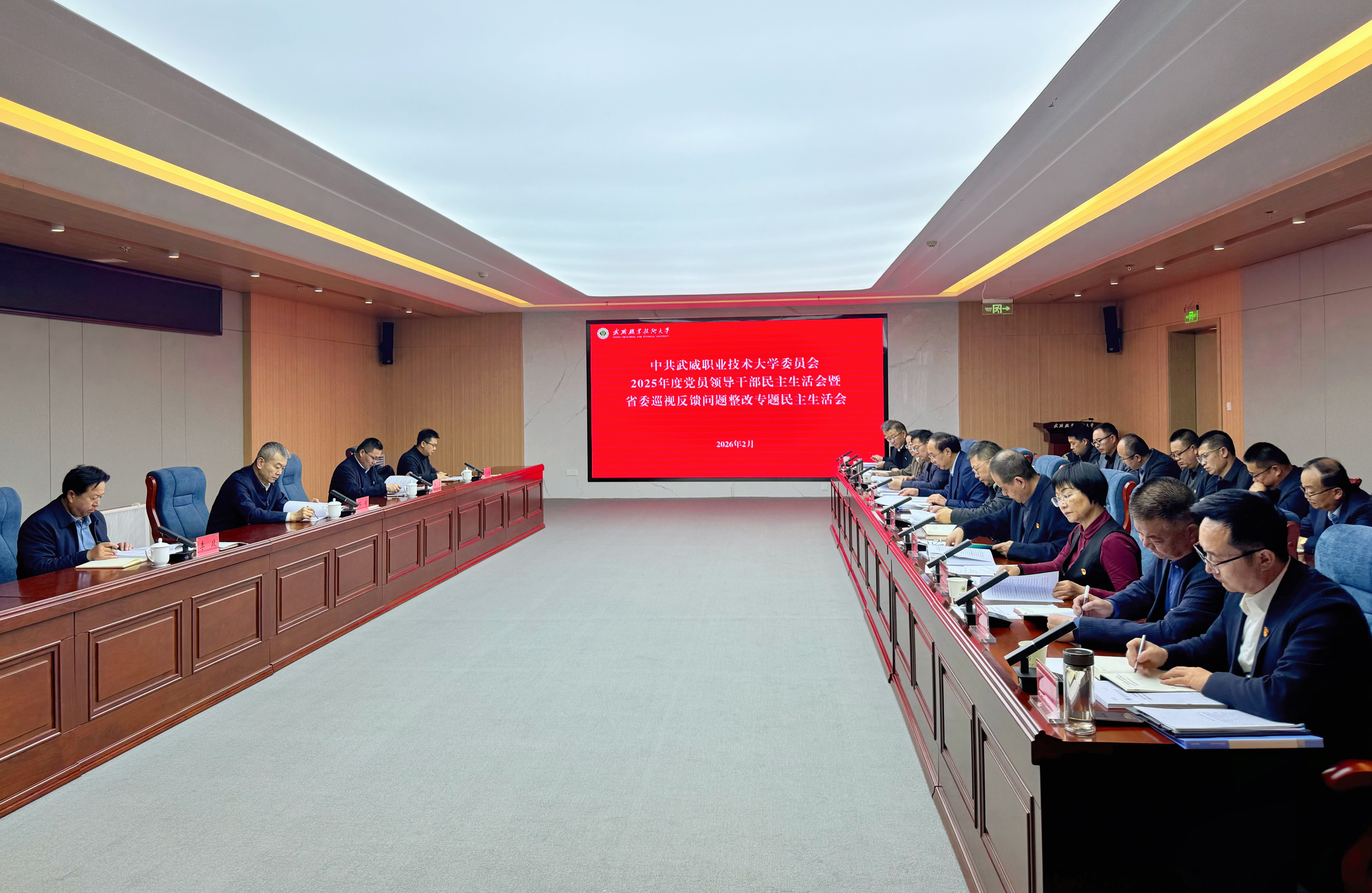 2月25日,中共武威職業(yè)技術大學委員會2025年度黨員領導干部民主生活會暨省委巡視反饋問題整改專題民主生活會在經(jīng)緯樓學術報告廳召開。主題是深入學習貫徹習近平新時代中國特色社會主義思想,全面貫徹落實黨的二十屆四中全會精神,以打攻堅戰(zhàn)、持久戰(zhàn)的決心和恒心,鍥而不舍落實中央八項規(guī)定精神,推進作風建設常態(tài)化長效化,以優(yōu)良作風凝心聚力、真抓實干,奮力開創(chuàng)中國式現(xiàn)代化建設新局面。