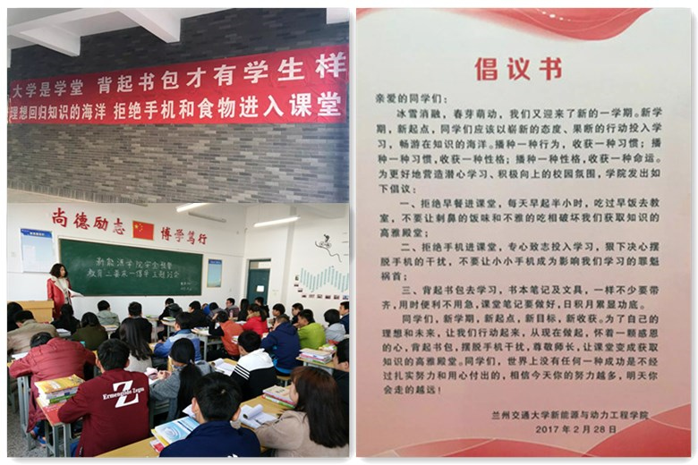 新學(xué)期伊始,新能源學(xué)院要求所有班主任及輔導(dǎo)員老師除了做好學(xué)生課堂管理工作、宿舍安全衛(wèi)生工作、密切關(guān)注“三困生”等常規(guī)工作之外,重點(diǎn)部署了安全預(yù)警教育和“三要求一倡導(dǎo)”教育活動(dòng),即要求學(xué)生上課必須關(guān)閉手機(jī)、不得將食品帶入課堂、不準(zhǔn)在公共場(chǎng)所吸煙,倡導(dǎo)學(xué)生背書包。