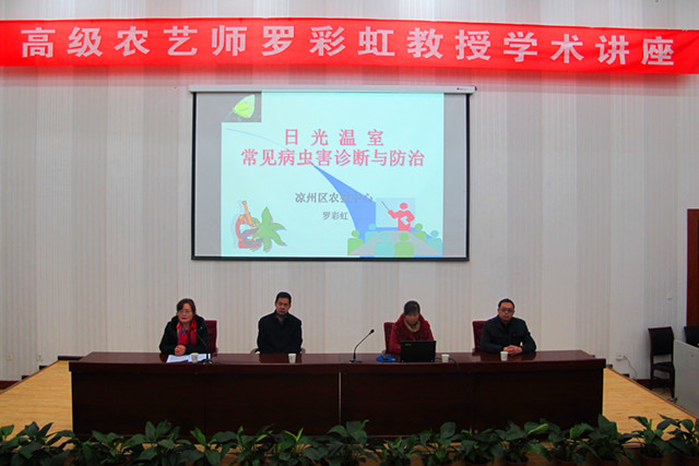 武威市涼州區(qū)農(nóng)業(yè)技術(shù)推廣中心高級農(nóng)藝師羅彩虹教授結(jié)合自身多年工作經(jīng)驗,做了題為《日光溫室常見病蟲害診斷與防治》的專題講座。講座緊緊圍繞涼州區(qū)日光溫室常見侵染性病害、植物生理病害、常見蟲害的癥狀識別,做了非常到位的講解。同時也針對不同的病蟲害提出了相應(yīng)的富有成效的綜合防治措施。