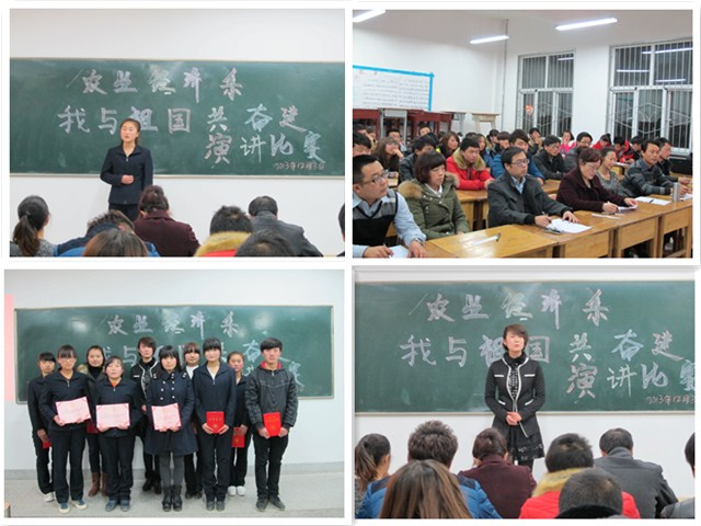 為紀(jì)念“12.9”學(xué)生愛國運(yùn)動(dòng)78周年,大力弘揚(yáng)愛國主義精神,進(jìn)一步增強(qiáng)廣大青年學(xué)子社會(huì)責(zé)任感與歷史使命感,展現(xiàn)我系學(xué)生朝氣蓬勃,奮發(fā)進(jìn)取的精神面貌,我系舉辦第三屆“我與祖國共奮進(jìn)”主題演講比賽。農(nóng)業(yè)經(jīng)濟(jì)系主任晏素珍、黨總支負(fù)責(zé)人蔡飛及系部教師觀看演講比賽并點(diǎn)評。