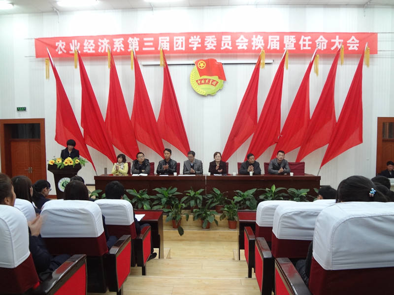 蔡飛介紹了學生會在學生工作中所起作用并對新一屆學生會提出了期望。同時,宣布對農業(yè)經濟系第三屆團學干部的任命。大會由第二屆學生會主席吳光宗做第二屆團學會工作總結,新當選主席趙三桃代表新一屆團學會宣誓。會上還對優(yōu)秀團學干部進行表彰。