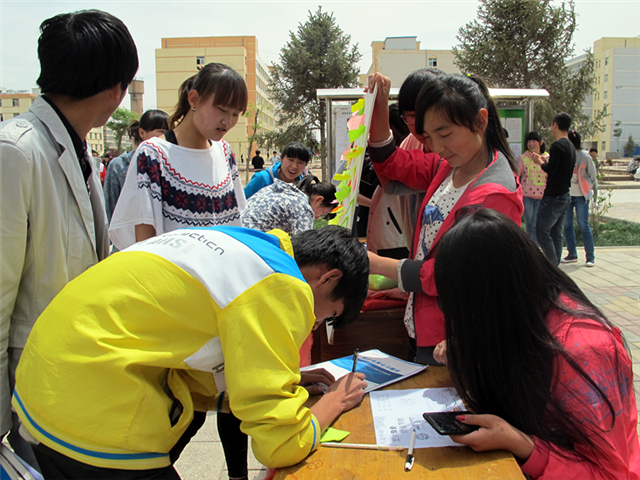 我系青年志愿者在校園設(shè)立了固定宣傳位,設(shè)計(jì)制作了展板,開展了“讓我們一起光盤吧”簽字征集活動(dòng),并在食堂餐桌上張貼光盤行動(dòng)的小便簽,與前來就餐的同學(xué)互動(dòng)。此外,志愿者還利用網(wǎng)絡(luò)社交平臺(tái)、微博、微信等新媒體進(jìn)行宣傳,深化了青年志愿者精神、踐行了文明新風(fēng)、收到了良好的效果,。