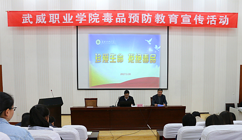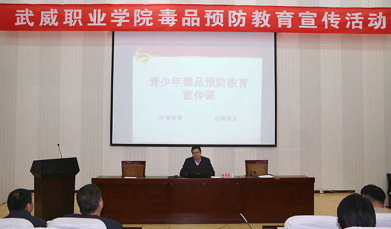 3月30日下午,院團(tuán)委聯(lián)合學(xué)生工作處、保衛(wèi)處在正德廳舉辦武威職業(yè)學(xué)院毒品預(yù)防教育宣傳活動(dòng),團(tuán)市委書(shū)記潘多民出席活動(dòng)并授課,學(xué)院各級(jí)團(tuán)干部270多人參加了活動(dòng)?;顒?dòng)由學(xué)生工作處處長(zhǎng)王守云主持。